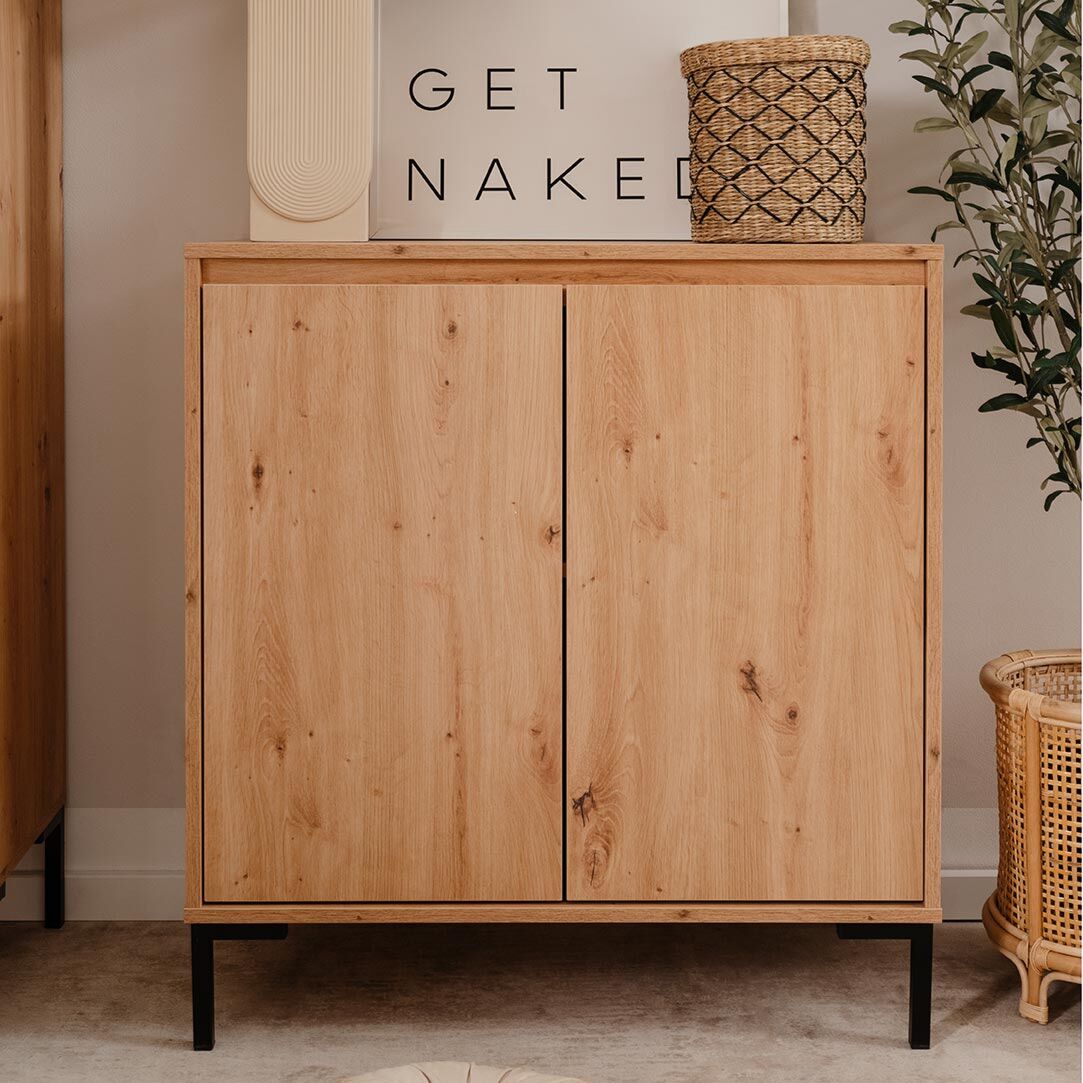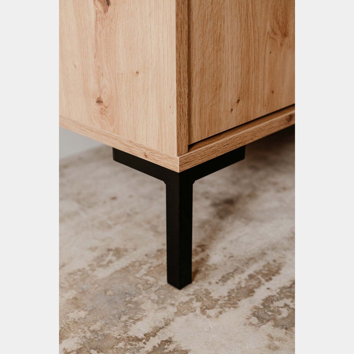 Madia stile industriale 2 ante, finitura Rovere con piedini neri