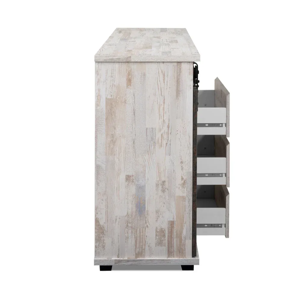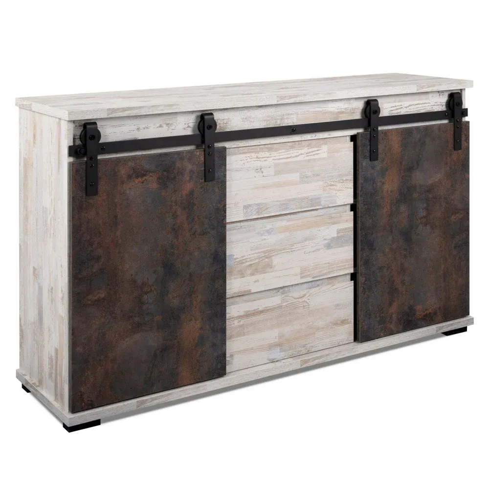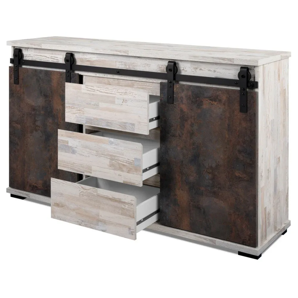 Madia Tromso con 2 ante e 3 cassetti in finitura Willow e Acero invecchiato