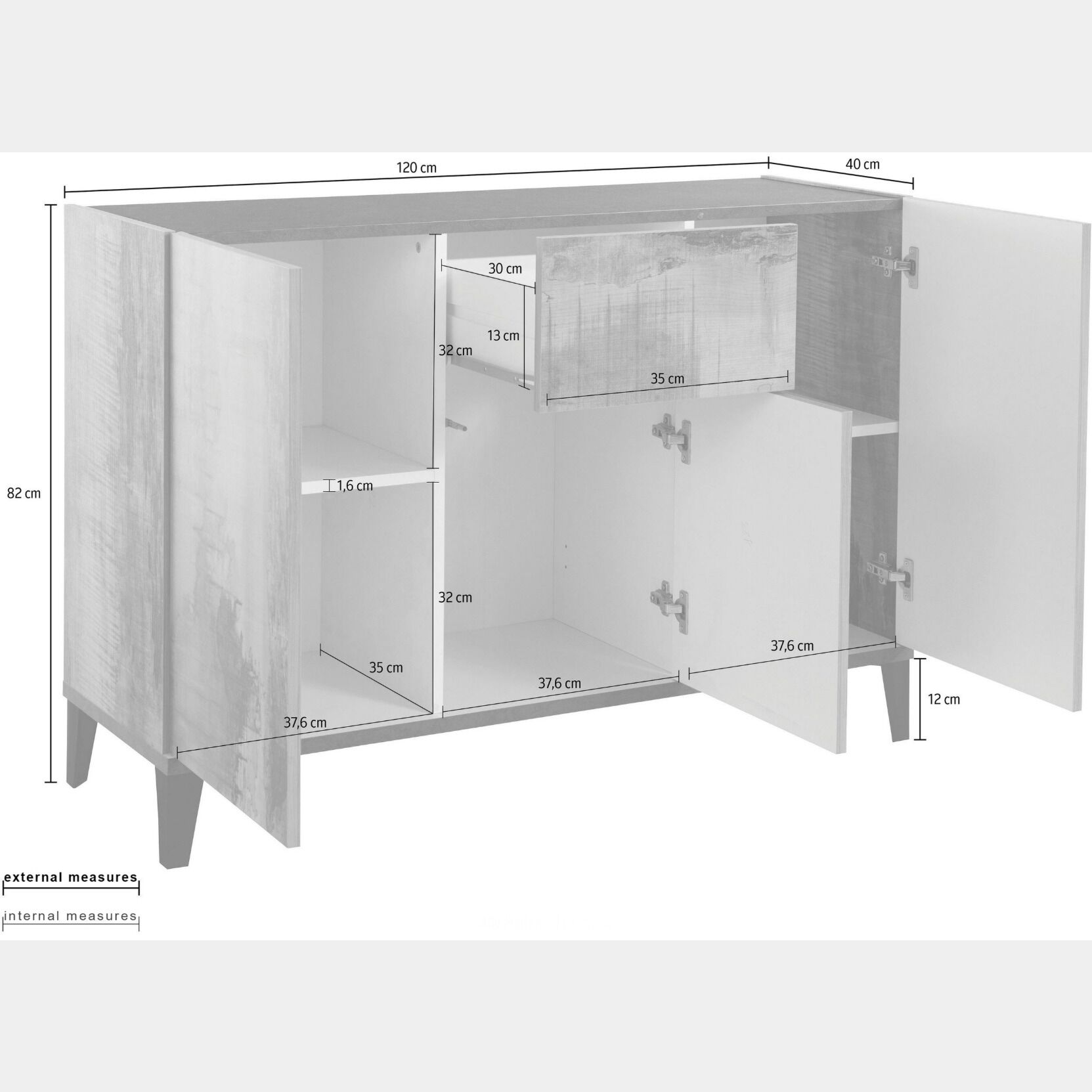 Dotata infatti di 2 ante esterne con un ripiano centrale ciascuna, un'anta centrale con meccanismo di apertura push-pull e di un cassetto garantisce un'ampia capienza.