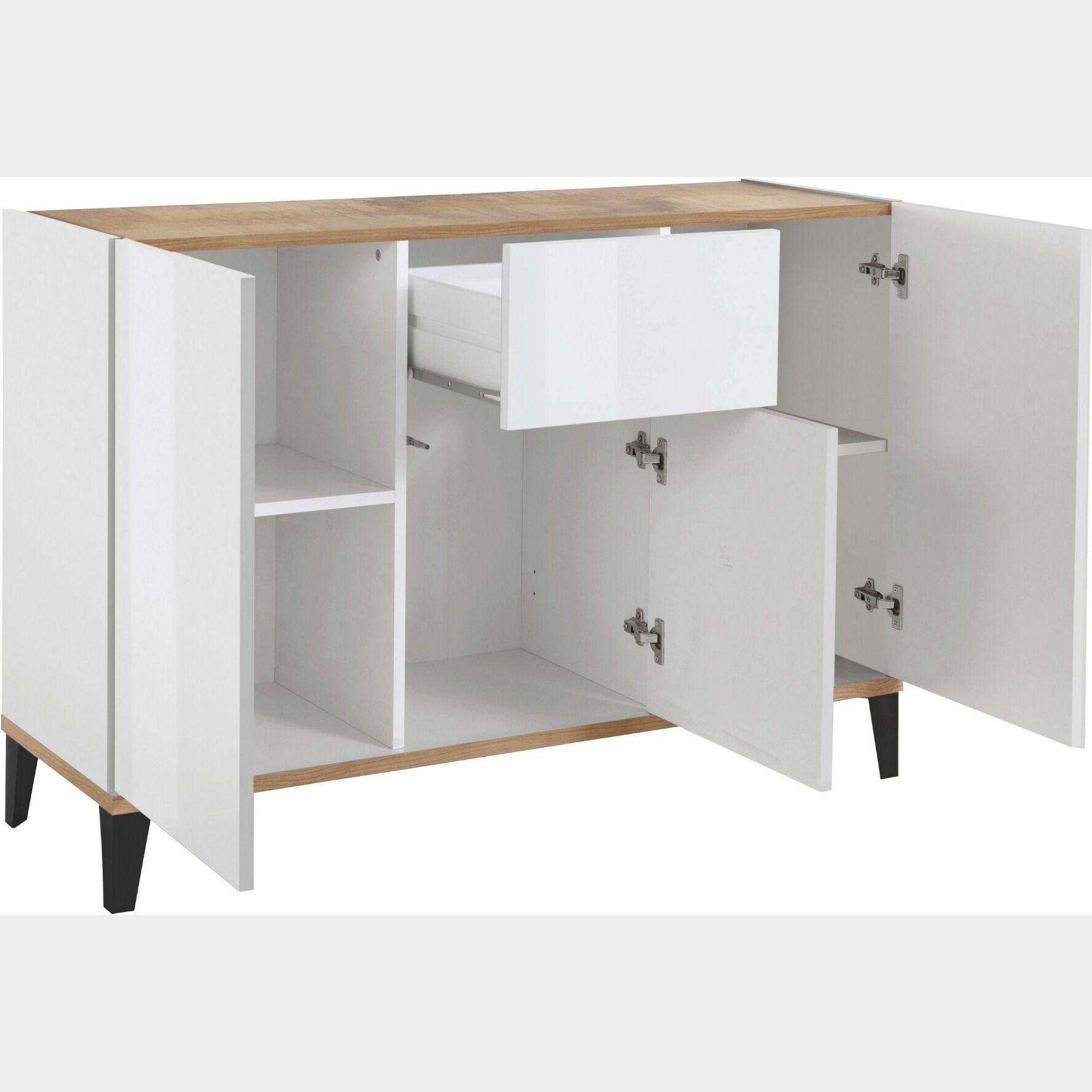 Madie economiche, Credenza moderna Bianca lucido e pero, 3 ante 1 cassetto