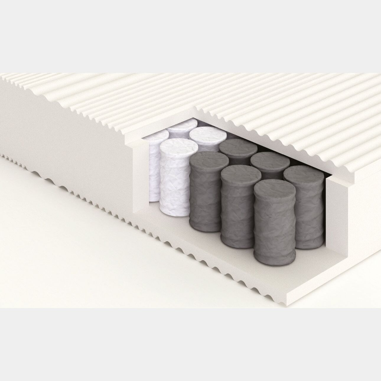 Lo strato di EcoMemory massaggiante evita compressioni dannose su spalla e articolazioni, agevola la corretta circolazione sanguigna durante il sonnno; la struttura interna realizzata con 800 molle insacchettate e molleggio a 5 zone differenziate annulla l'eventuale effetto di trascinamento nel caso che una persona sia più leggera dell'altra.
