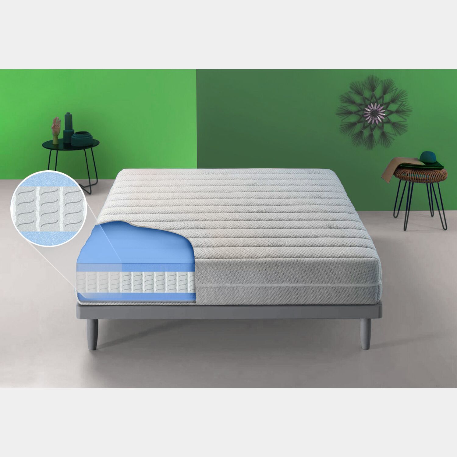 Sistema 800 molle insacchettate indipendenti. Grazie alla flessibilità di ogni singola molla, fornisce un sosteno eleastico adattandosi al peso del corpo in modo equilibrato.