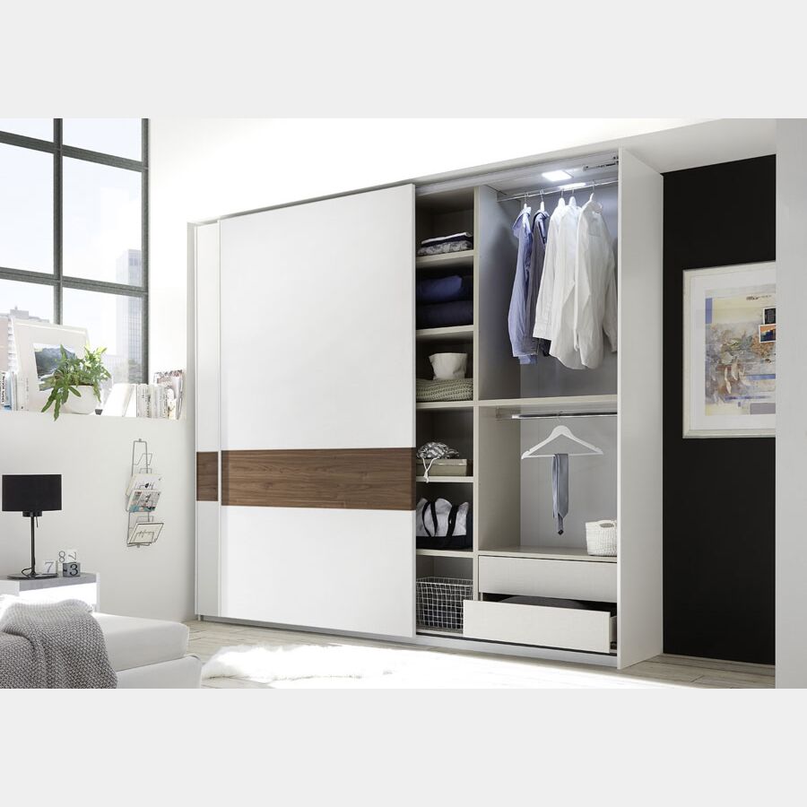 Maxi Armadio moderno con ante scorrevoli, Bianco Opaco con fascia Noce Dark
