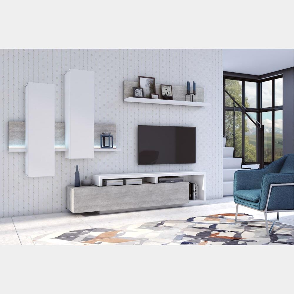La Mensola a muro della collezione Cracovia è elegante e dal design unico grazie alla combinazione del colore bianco opaco con il grigio cemento.
