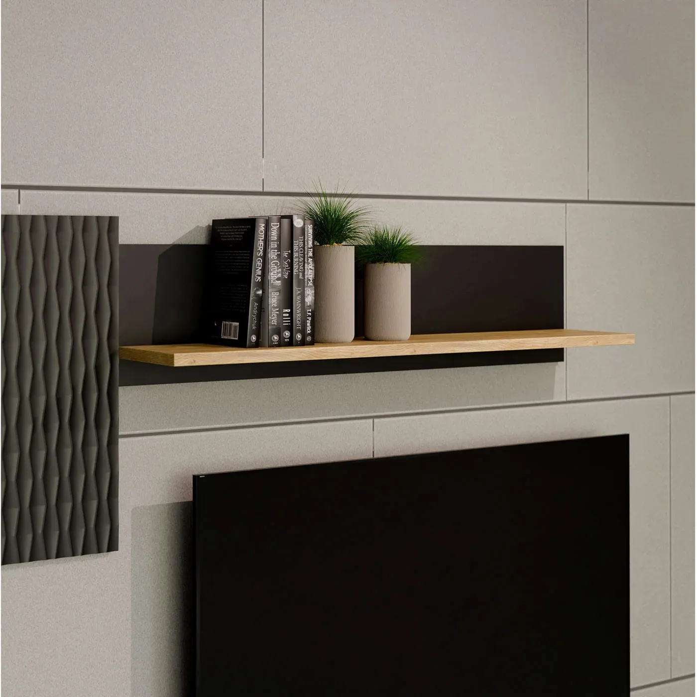 Pratica e versatile la mensola presenta un design semplice e moderno, valorizzato dall'accostamento di due finiture in contrasto che creano un piacevole impatto. Forme e dimensioni sono state progettate per inserire la mensola in più contesti: lo stesso elemento può infatti trovarsi in soggiorno, in cucina, in ingresso, in corridoio oppure in camera da letto.