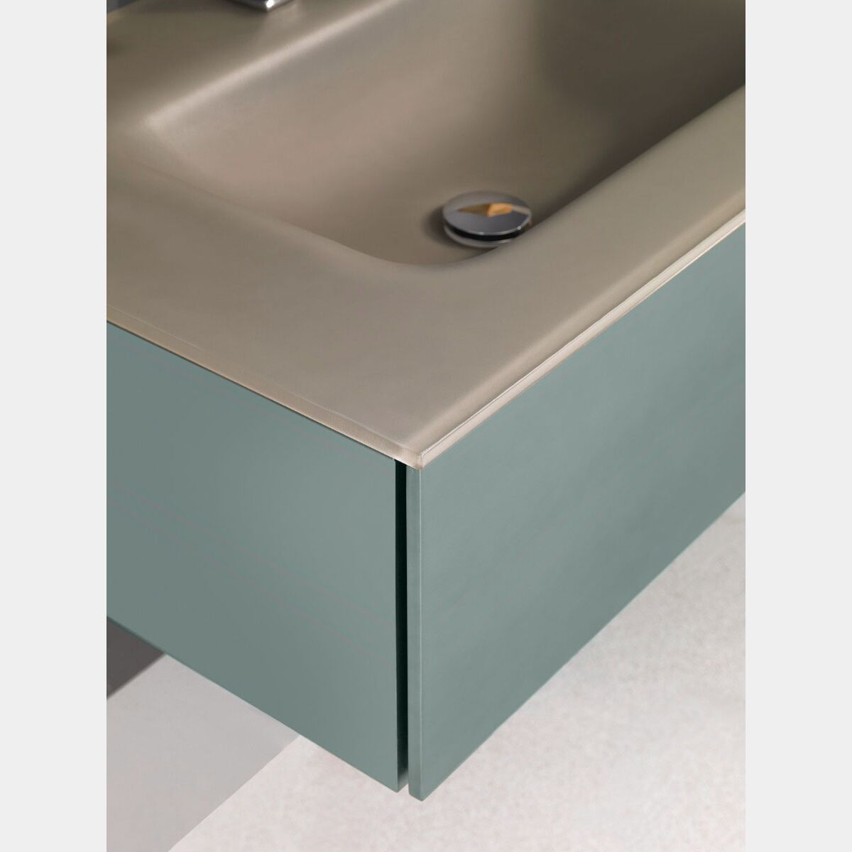 Mobile bagno con lavabo integrato con cassetto, finitura Grigio Traffico e satinato Terra
