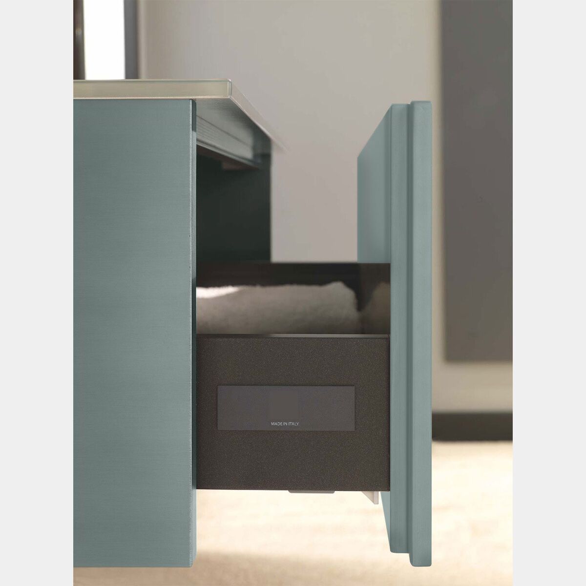 L'accostamento di due delicate finiture consente al mobile da bagno sospeso di adattarsi a tutti i contesti moderni dallo stile minimal. E' possibile personalizzare le finiture del top, scegliendo tra satinati o laccati lucidi e le finiture di scocca e frontali. Per questo elemento sono disponibili diverse finiture anticate e un'ampia gamma di tinte in laccato opaco.