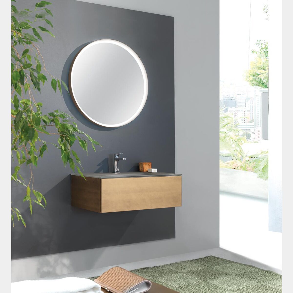 Mobile bagno con lavabo integrato con cassetto, finitura Bronzo anticato e satinato Terra