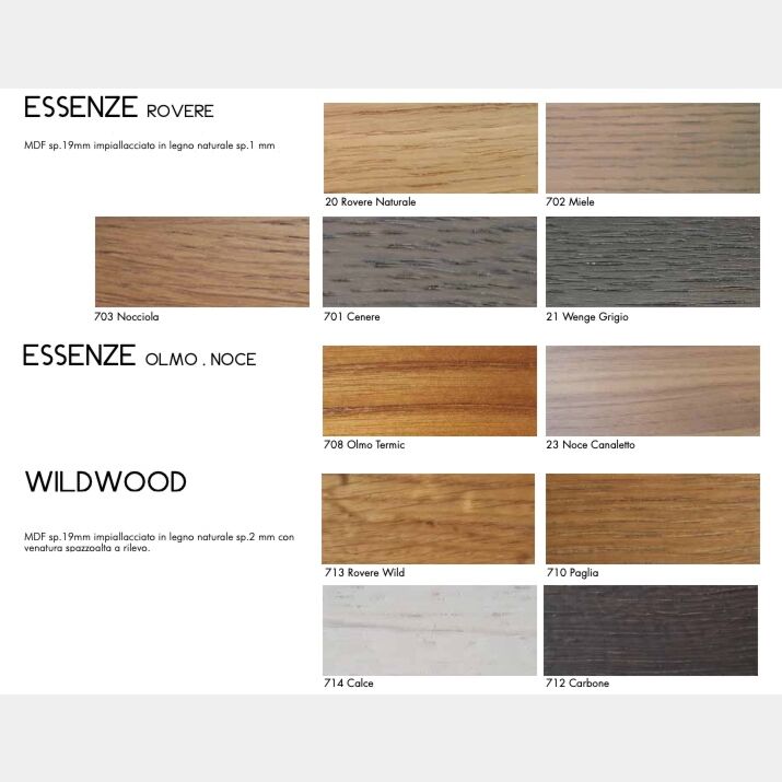 A disposizione vi è un ampio campionario di finiture per consentire una totale personalizzazione del mobile, creare il giusto arredo per il propro bagno significa personalizzare l'ambiente con un tocco unico e personale.