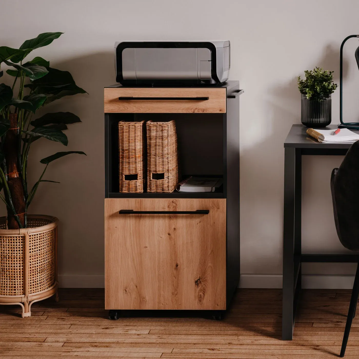 Mobiletto per la tua cucina in finitura Antrancite e Bamboo. E' disponibile anche in versione Antracite/Rovere Oak e Bianco.