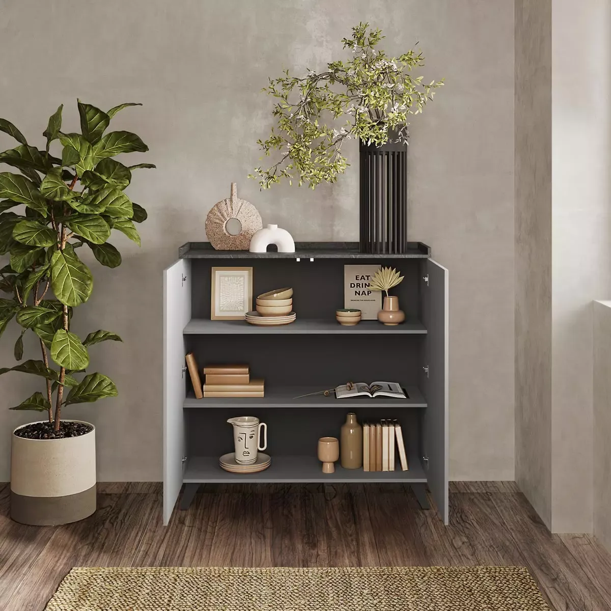 Mobile contenitore con piedini, apertura push-pull, Ardesia e Piombo