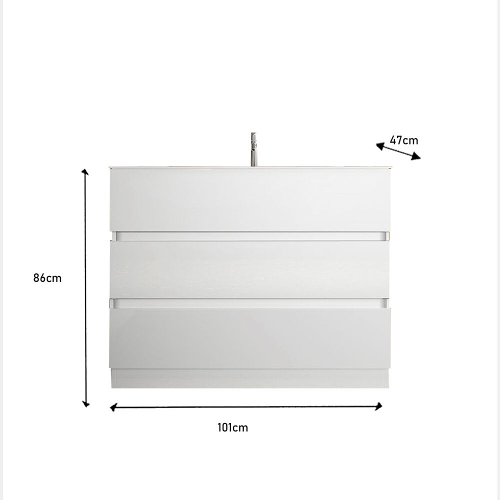 Mobile da bagno con 3 cassetti, bianco lucido larghezza 100 cm