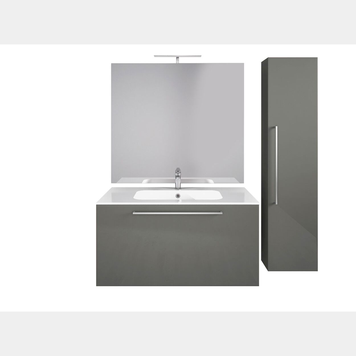 Mobile da bagno sospeso con colonna, Grigio Lucido Antigraffio