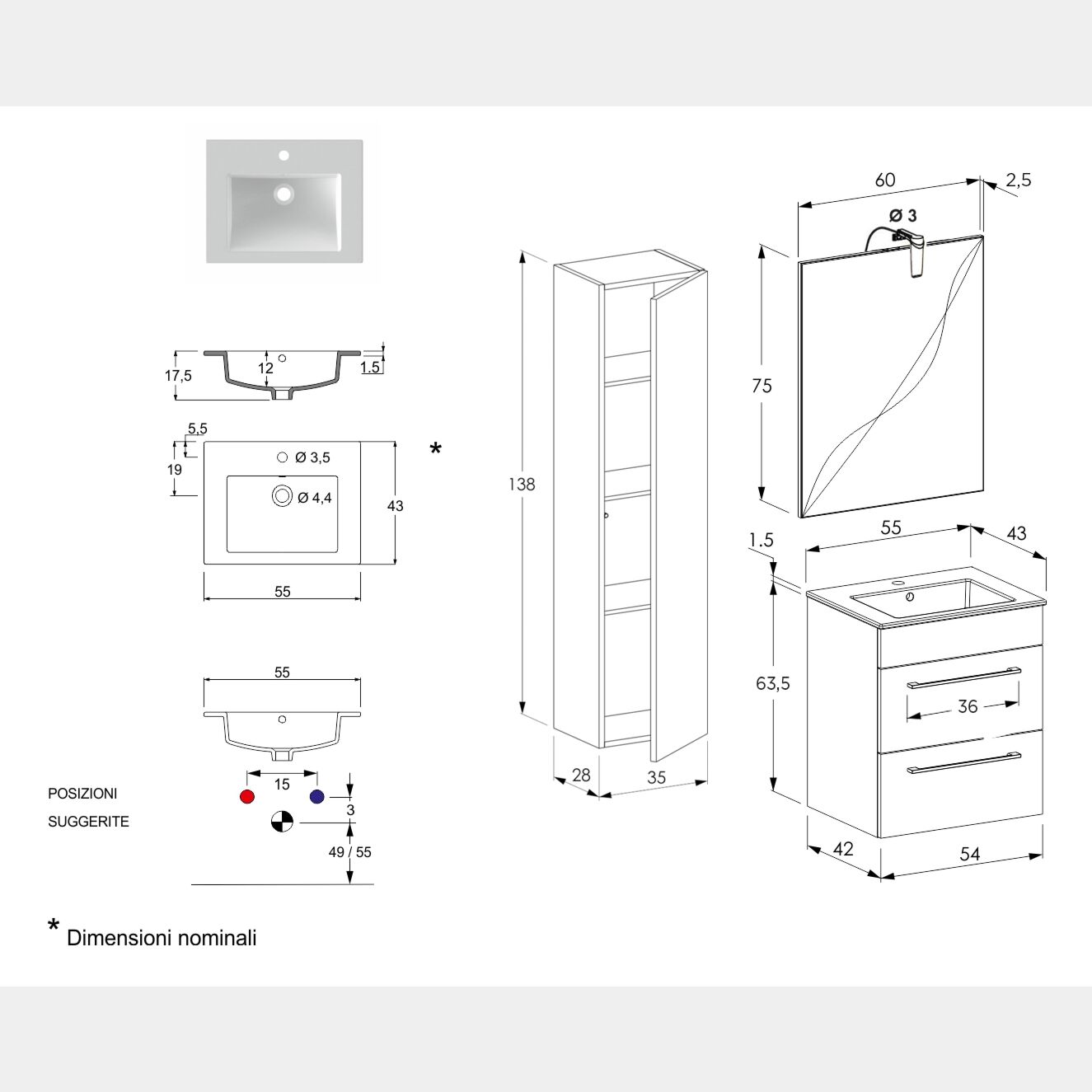 - Specchio: L.60 H.75 P.2.5 (optional)