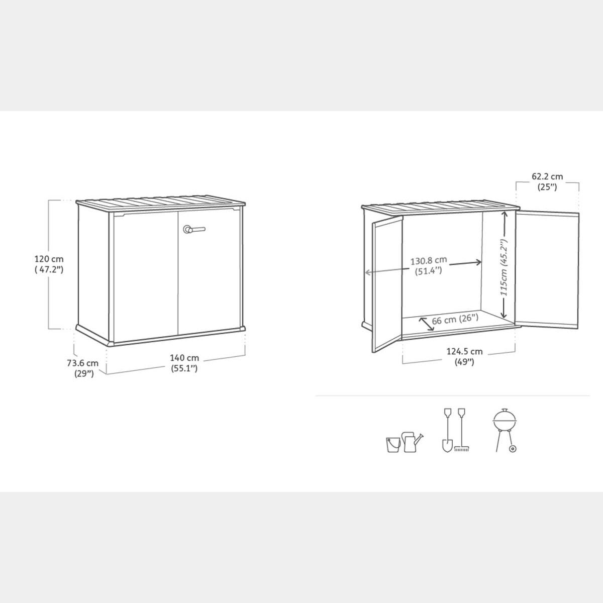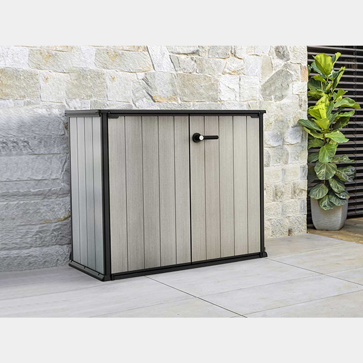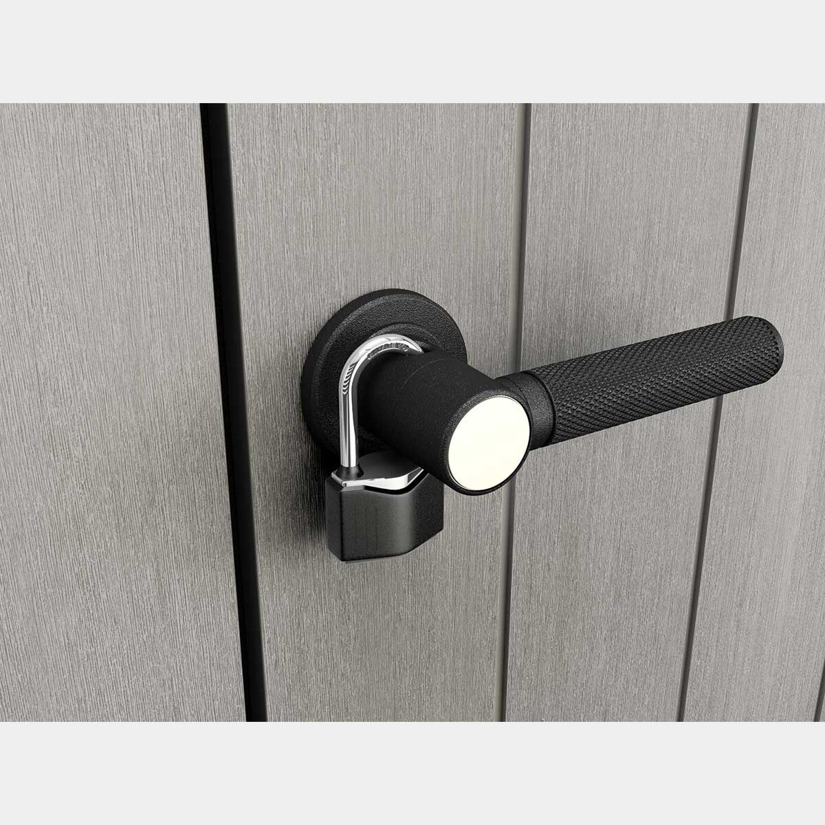 Il porta attrezzi da esterno è dotato di una struttura con pareti a doppio strato. Il pavimento è rialzato, utile a mantenere il contenuto asciutto ed ha una chiusura lucchettabile per una sicurezza aggiuntiva.