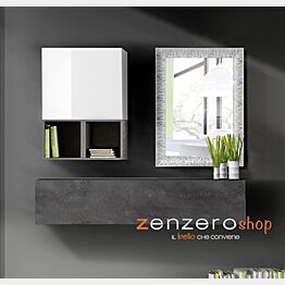 Mobile da ingresso dal design moderno composto da:- Un cubo con anta battente e in finitura bianco laccato lucido- Elemento ribalta appeso, dal design moderno e funzionale, di solida costruzione in finitura Ossido- 2 vani piccoli a giorno Beton- Una specchiera in legno lavorato, finitura Argento (misure personalizzabili)Perfetta composizione con poca profondità. Made In ItalyMobile fornito in kit con tutte le istruzioni necessarie.Dimensioni Cubo: L.57 H.51 P.31Pensile: L. 138 P. 30 H. 29Vano piaccolo a giorno: L.28 H.29 P.30Specchiera: 63x83
