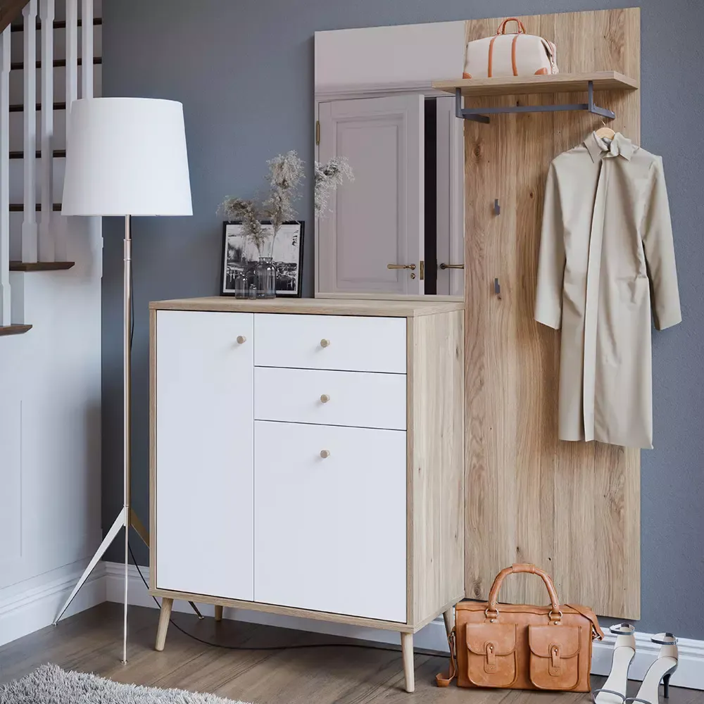 Mobile da ingresso stile nordico, finitura Rovere e Bianco
