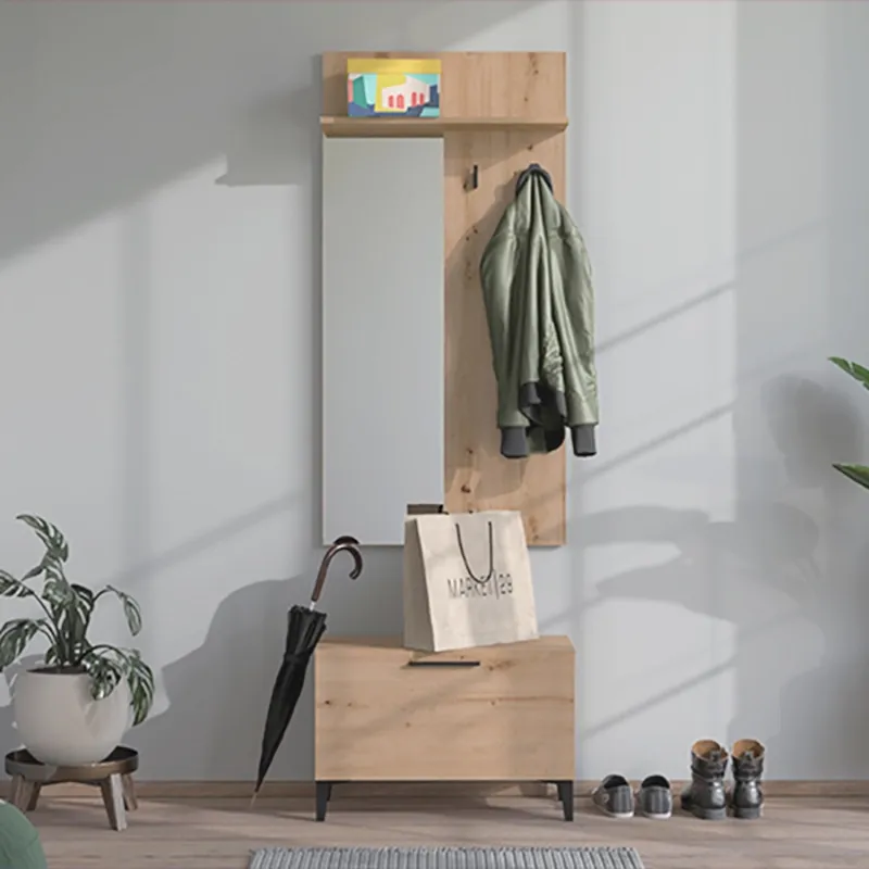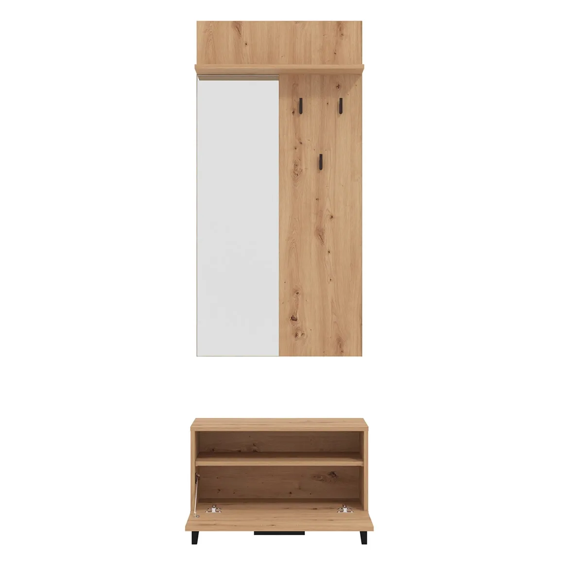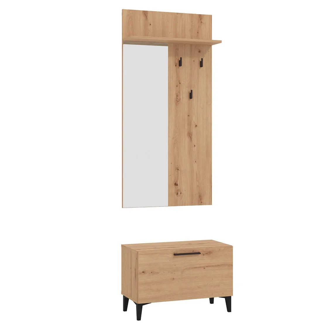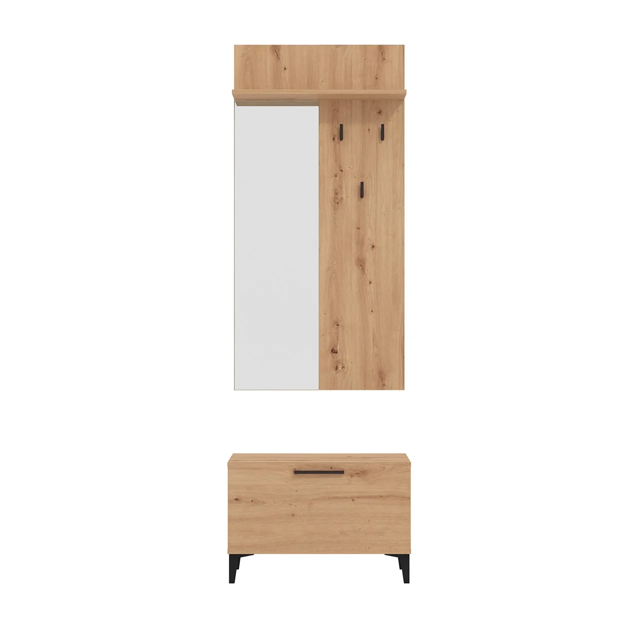 Mobile ingresso con panca e pannello appendiabiti, finitura Rovere