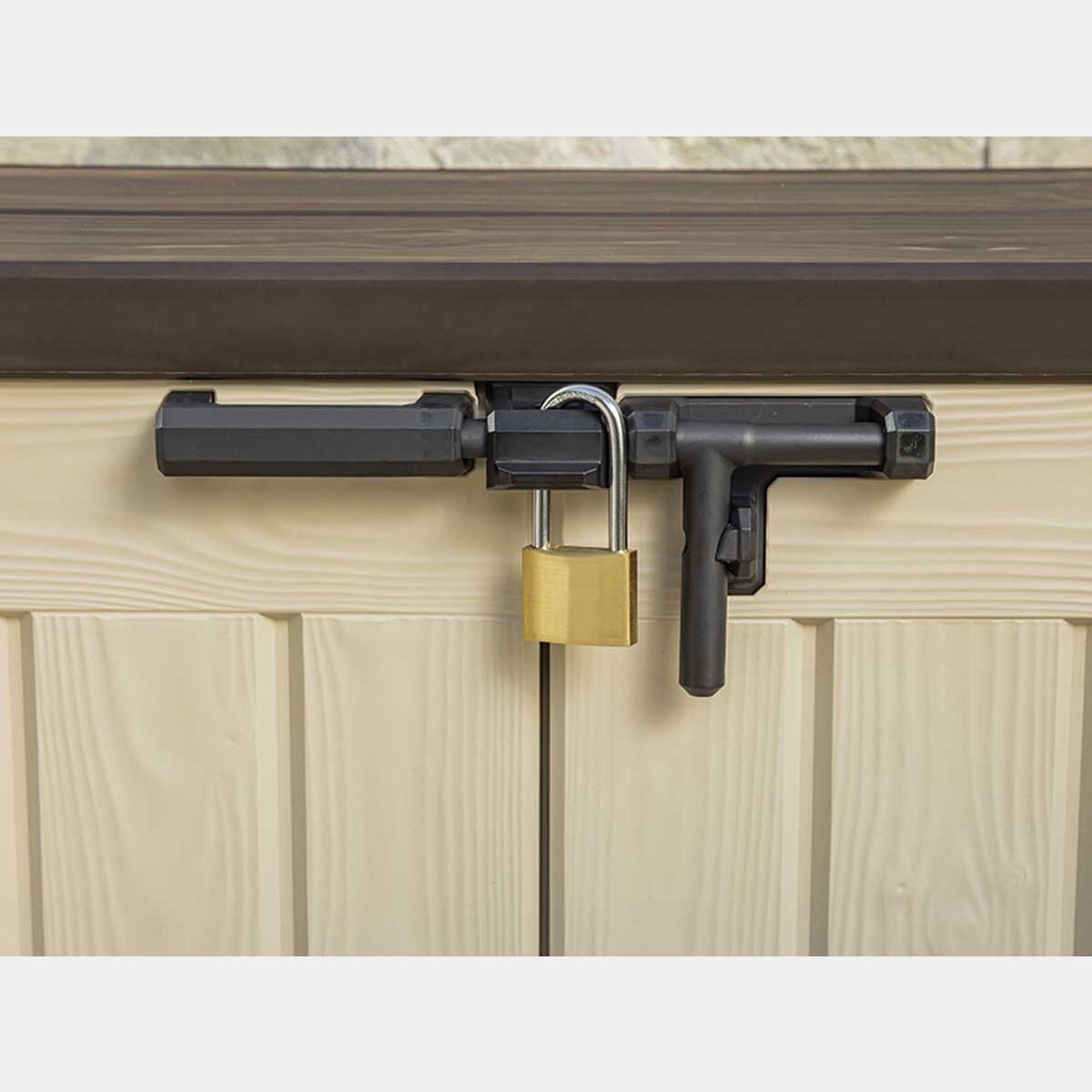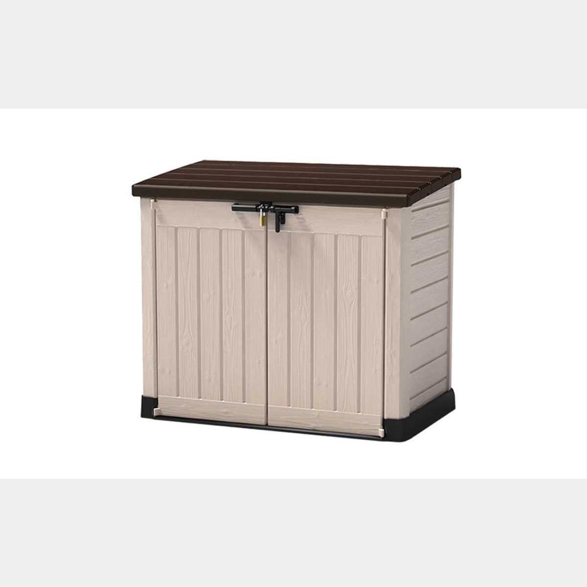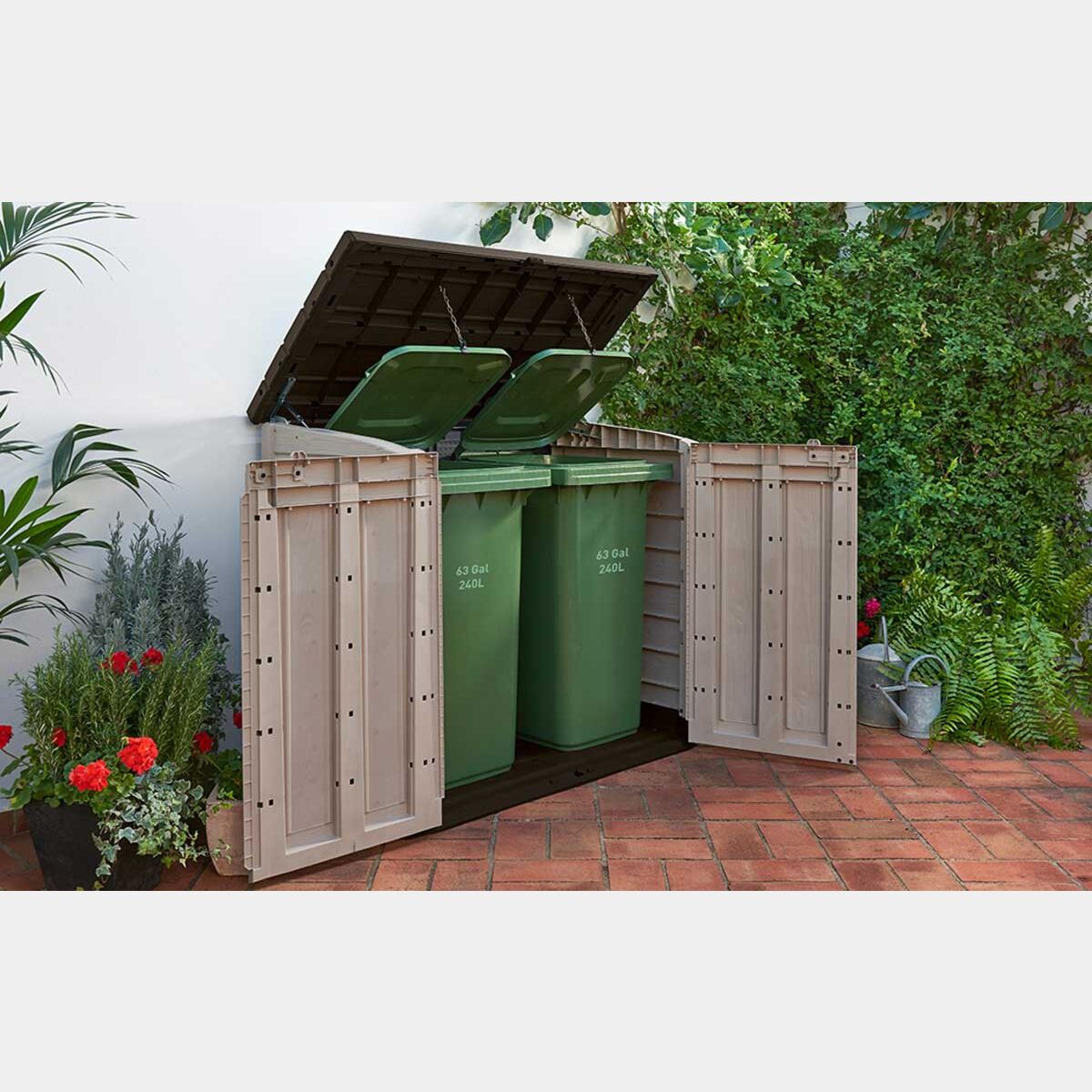 Facile da usare e da assemblare, Salice Max rappresenta la soluzione ideale per conservare ad esempio barbecue e attrezzi. Compatto e versatile, resistente agli agenti atmosferici e con una capacità fino a 1200 litri. Due aperture: una frontale e una superiore; serratura a pedale e kit per l'aggancio dei bidoni sul coperchio.