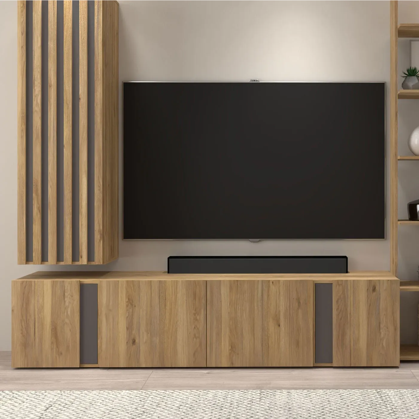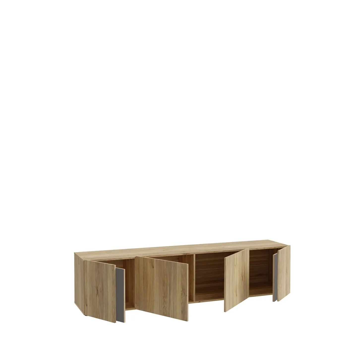 Mobile porta tv 4 ante, Rovere mauvella e Grigio scuro, L.197 H.47