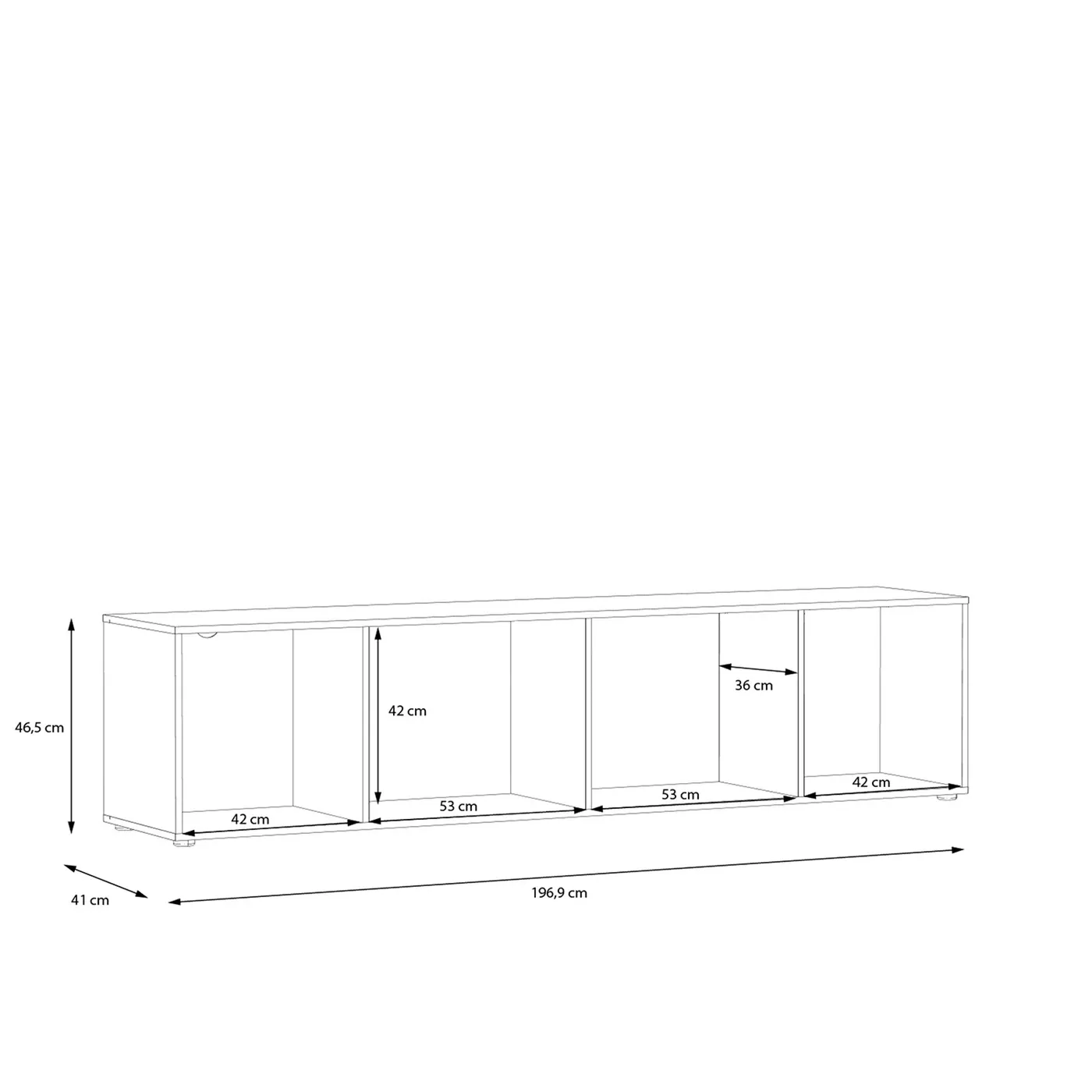 Perfetto per soggiorni e open space moderni e minimal il mobile tv offre la massima praticità: le quattro capienti ante offrono un prezioso spazio contenitivo per giochi, controller e accessori della televisione.