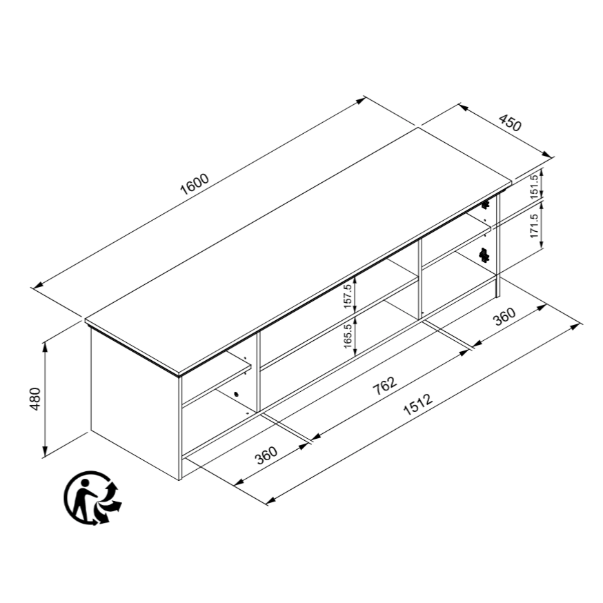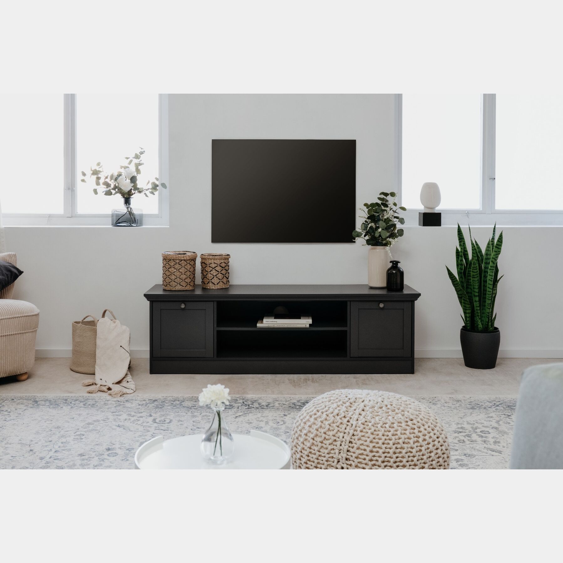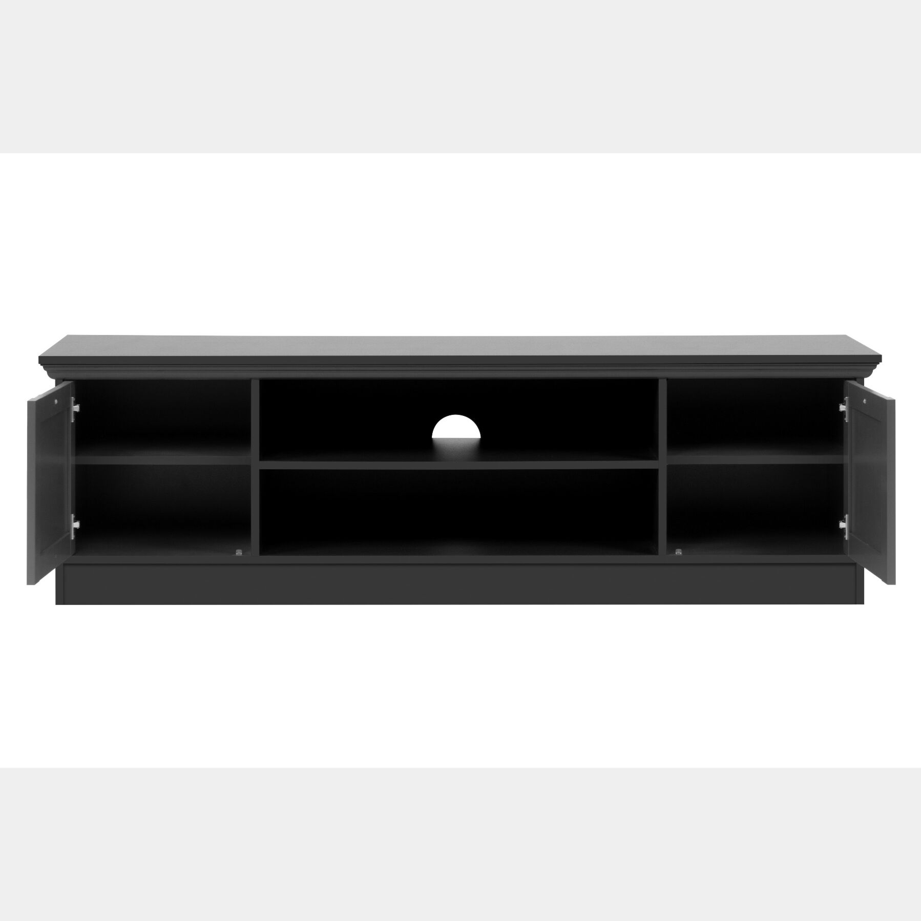 Il porta tv viene progettato per assicurare comfort e funzionalità: per questo è previsto un ripiano interno ad ogni anta ed un ripiano centrale che crea due speziosi vani a giorno. Lo schienale è dotato di foro passacavi per consentire un'organizzazione perfetta ed invisibile di cavi.