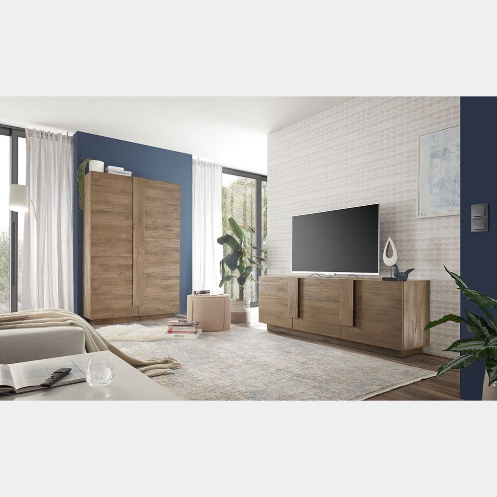 La nuova finitura Mercure con le sue sfumature irregolari assicura un mobile tv di impatto, che diventa protagonista del tuo salotto. Anche le maniglie rettangolari giocano un ruolo importante: elementi tipici del design moderno italiano assicurano praticità nell'apertura di anta e cassetti offrendo al contempo uno stile ben definito al porta tv.