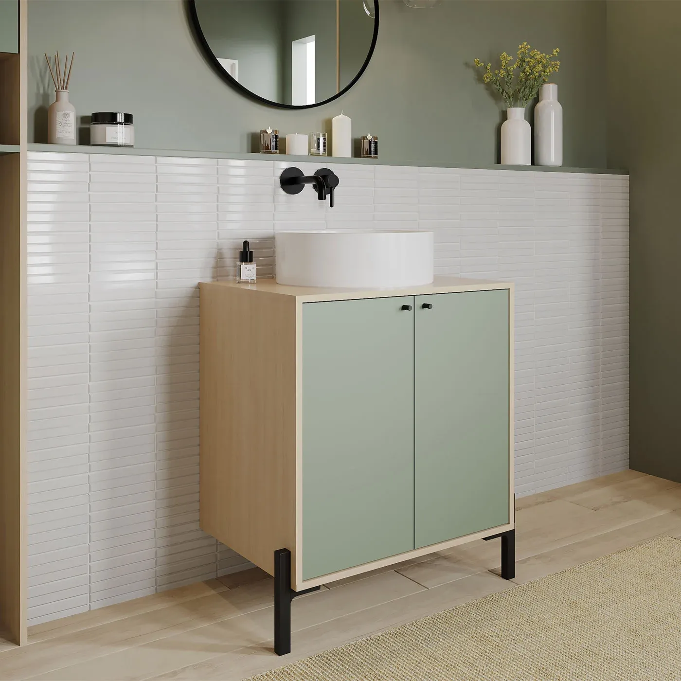 Potrai comporre un bagno accostando i vari elementi disponibili nella collezione Ledro.