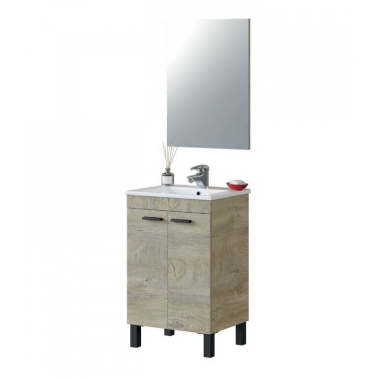 Mobile sottolavabo con due ante e uno specchio, finitura rovere alaska