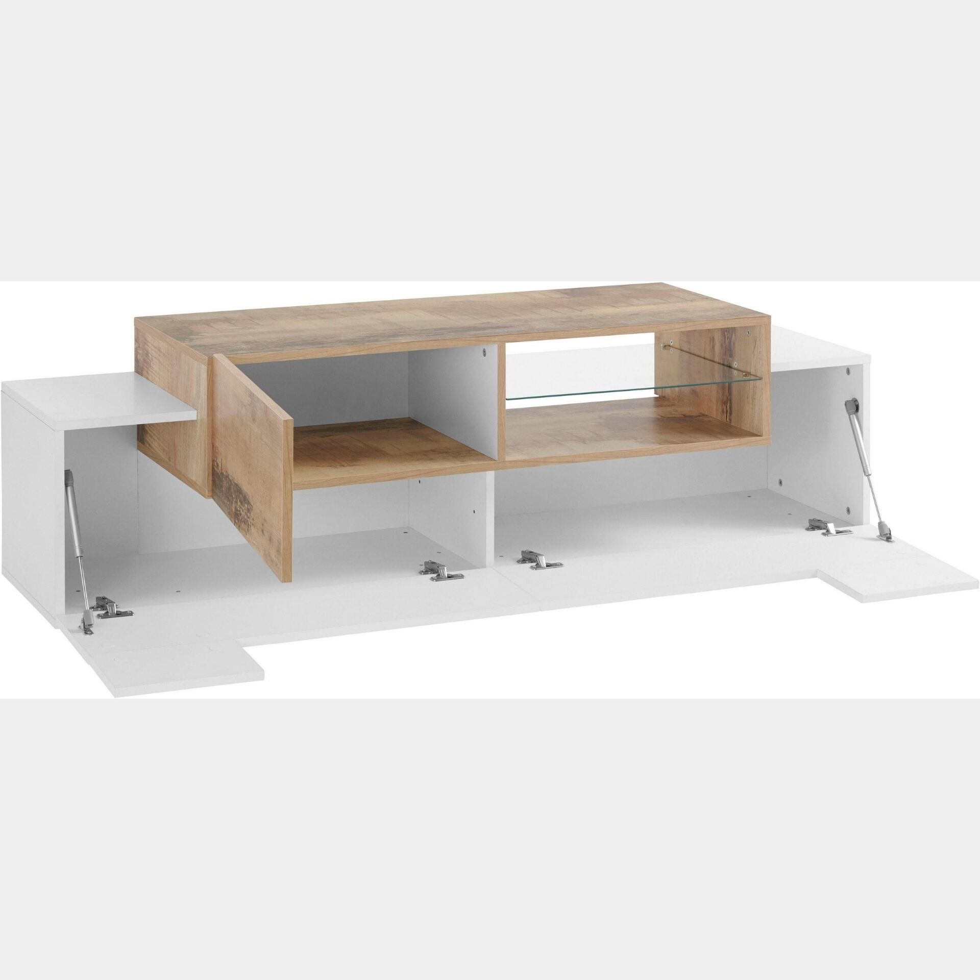 Il mobile porta tv presenta una struttura che offre un'ampia capienza: dotato di un'anta, 2 ribalte ed un ripiano in vetro assicura una totale praticità nel quotidiano.