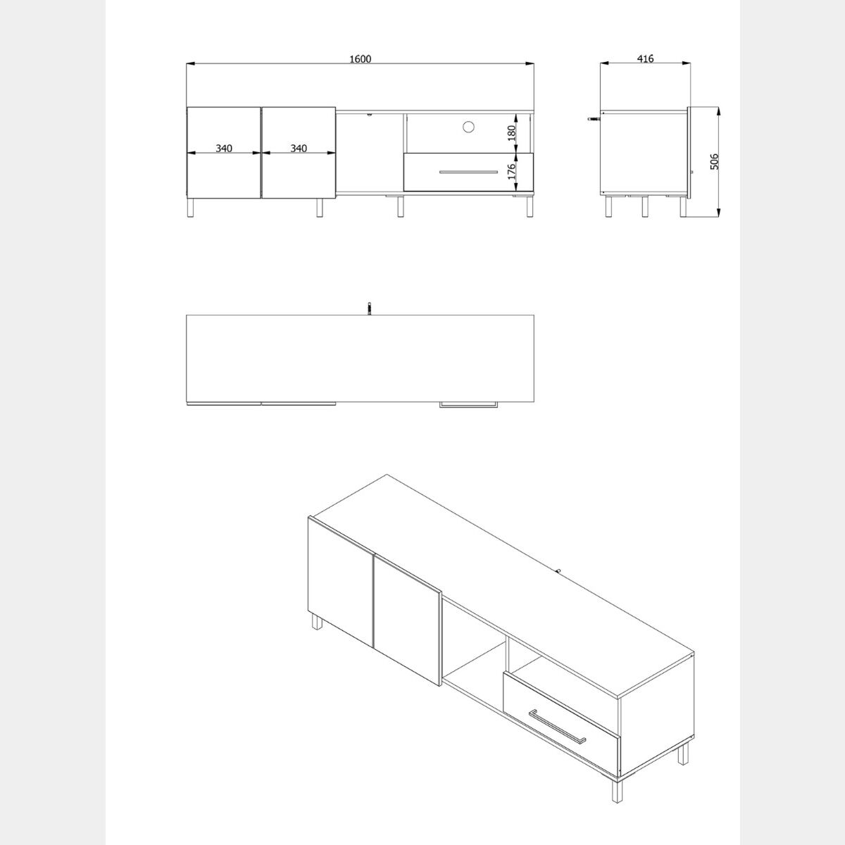 Il porta tv è progettato per offrire un ampio spazio di appoggio cui riporre dvd, cd, giochi e tutti gli apparecchi collegati alla televisione. E' composto da due ante posizionate nella sinistra, un vano a giorno centrale, un piccolo vano a giorno superiore sulla destra ed un pratico cassetto interiore.