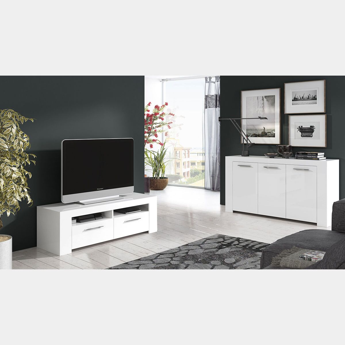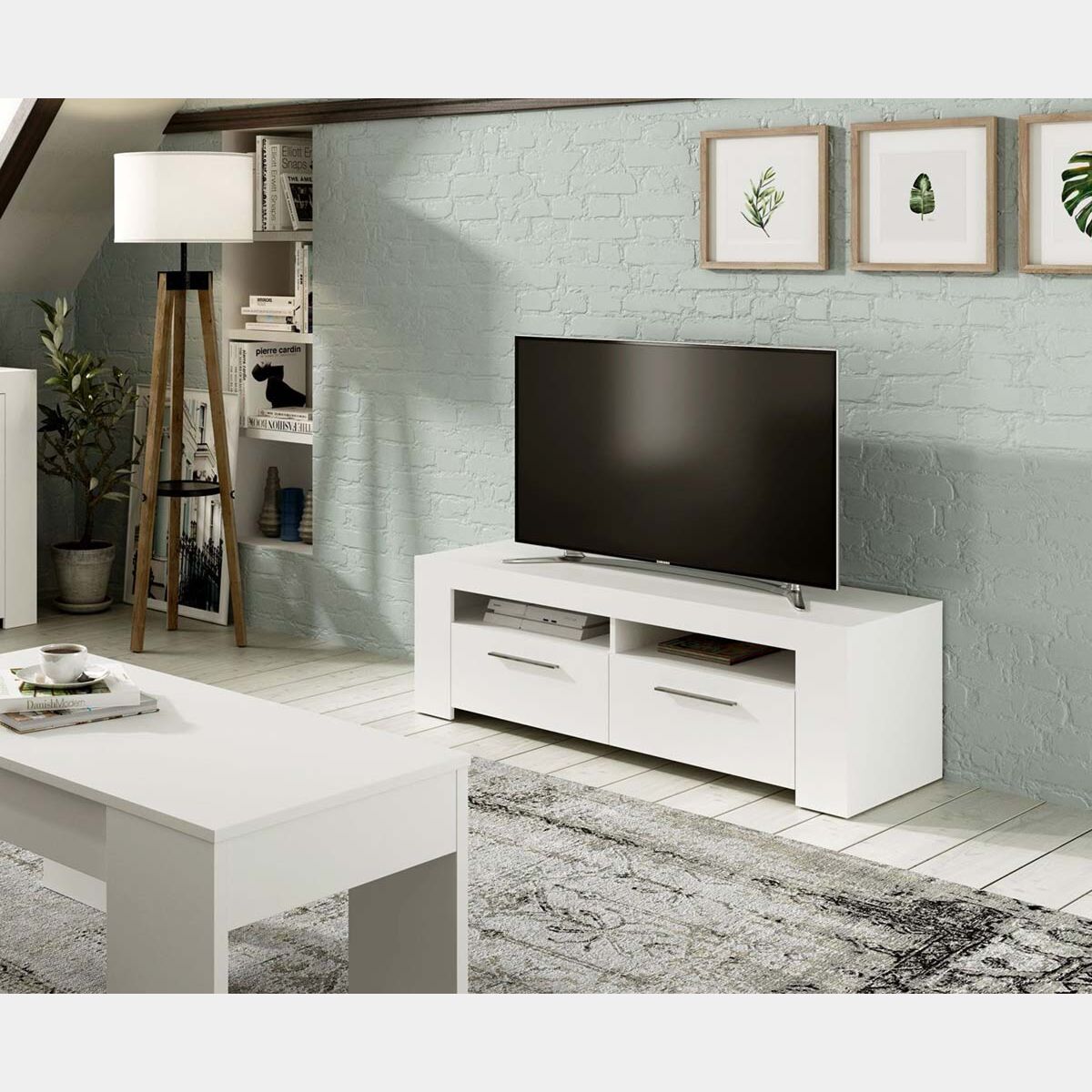 Mobile tv 2 ribalte 2 vani a giorno, finitura Bianco opaco