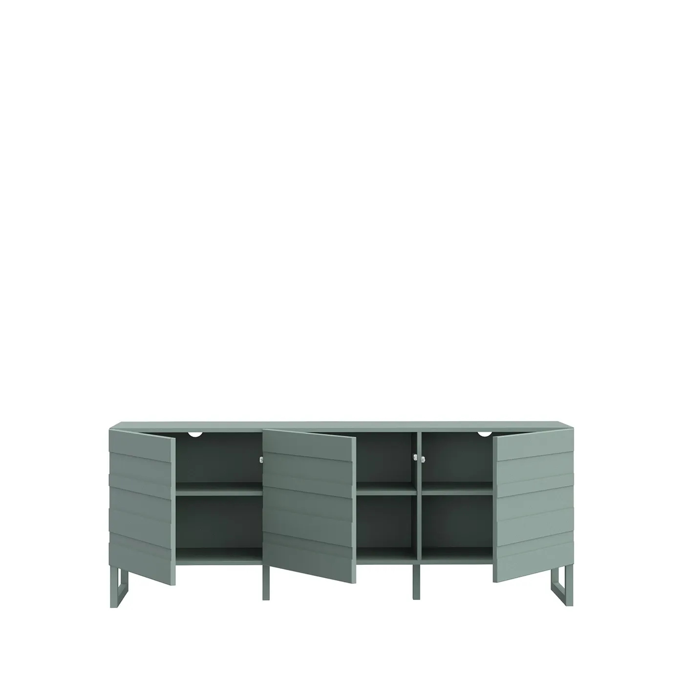 Le tre ante battenti, dotate di meccanismo di apertura push-pull, presentano un ripiano centrale che suddivide in due lo spazio, assicurando un'ampia campienza per libri, giochi, controller e molto altro.