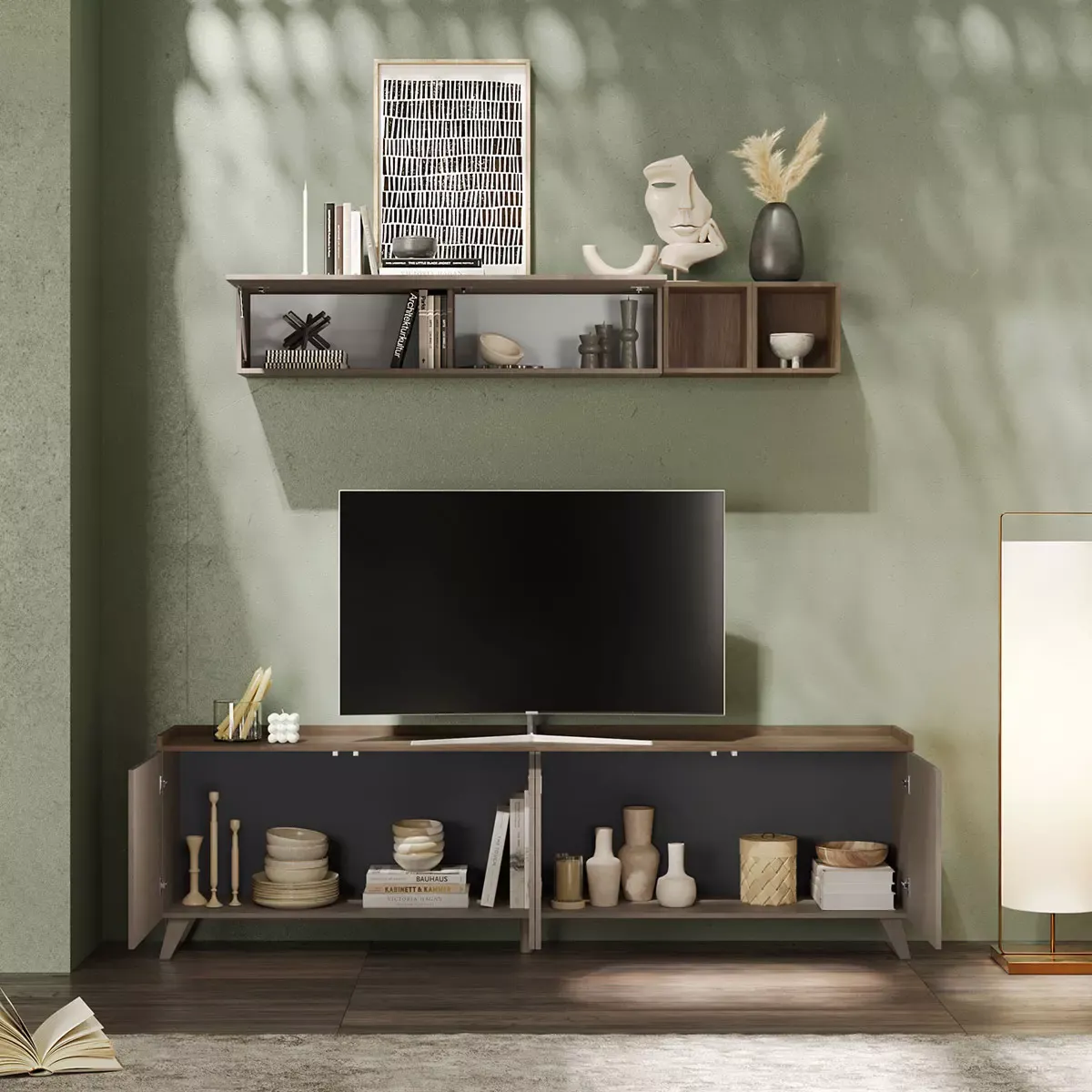 Mobile tv 4 ante con piedini, apertura push-pull, Mercure e Bronzo