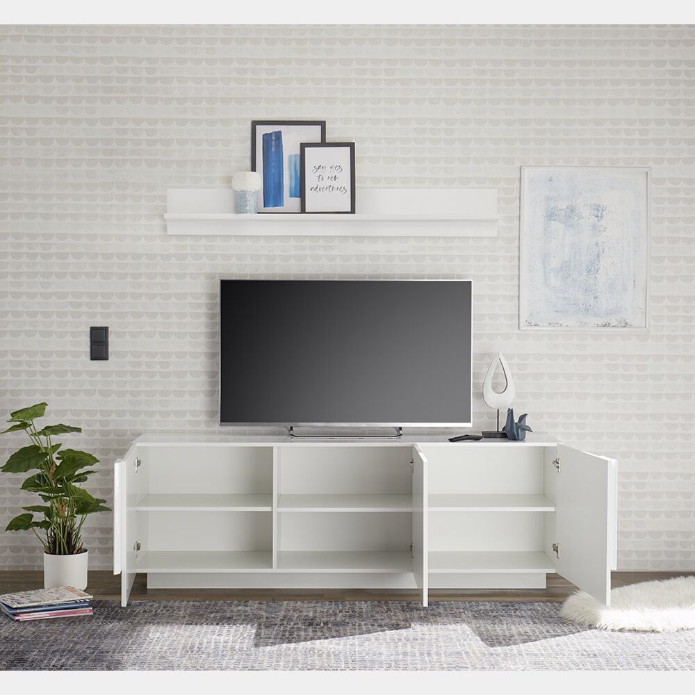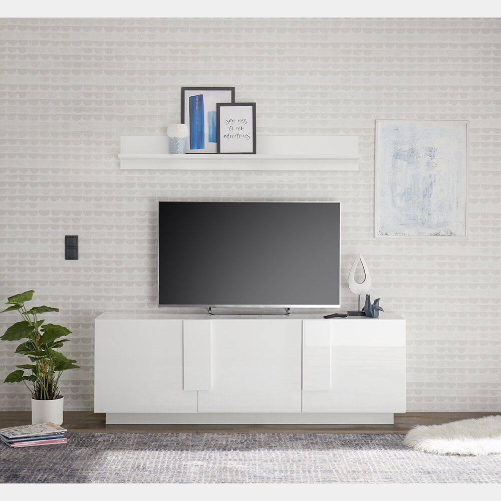 La finitura Bianco laccato lucido assicura un mobile tv elegante, che diventa protagonista del tuo soggiorno. Anche le maniglie rettangolari giocano un ruolo importante: elementi tipici del design moderno italiano assicurano praticità nell'apertura di anta e cassetti offrendo al contempo uno stile ben definito al porta tv.
