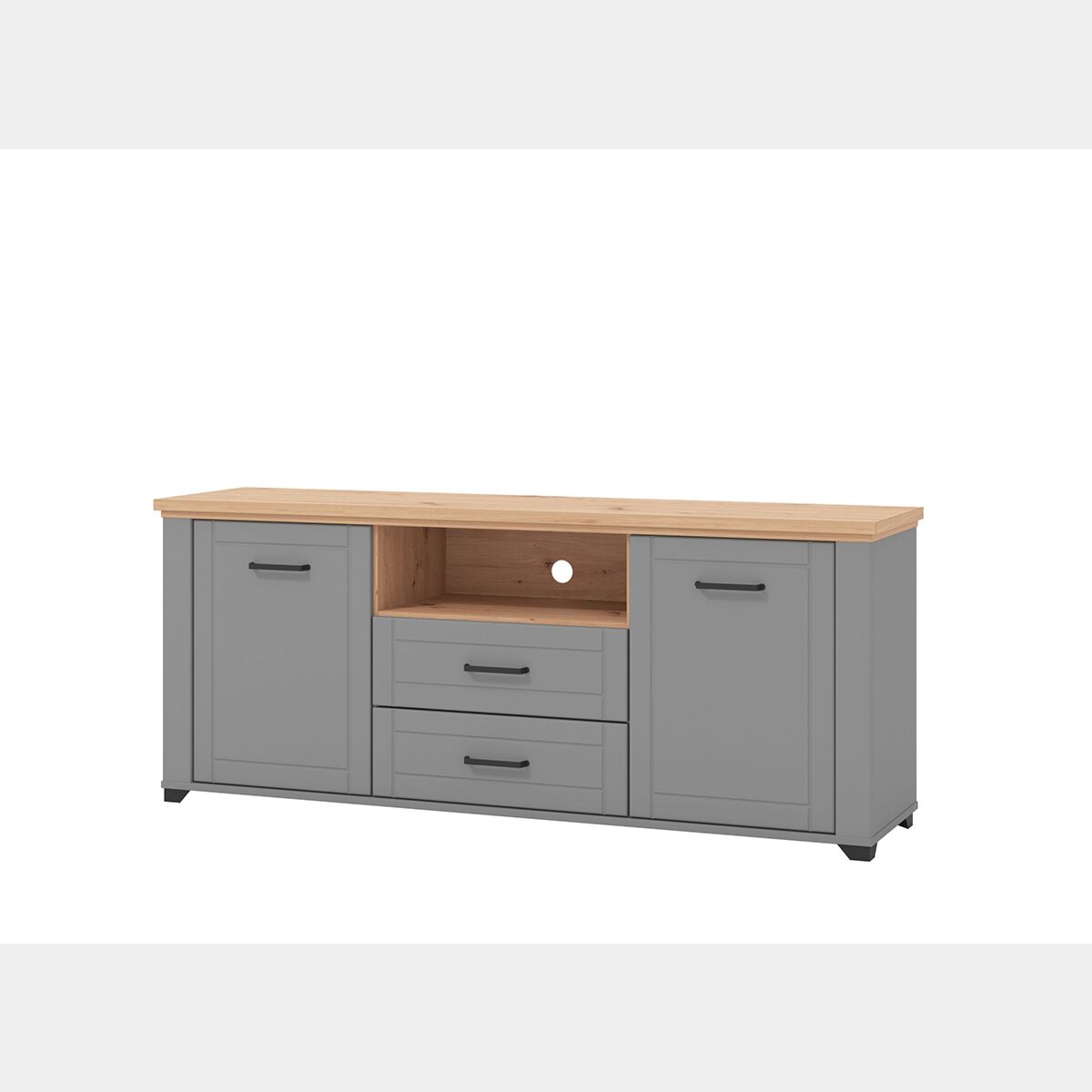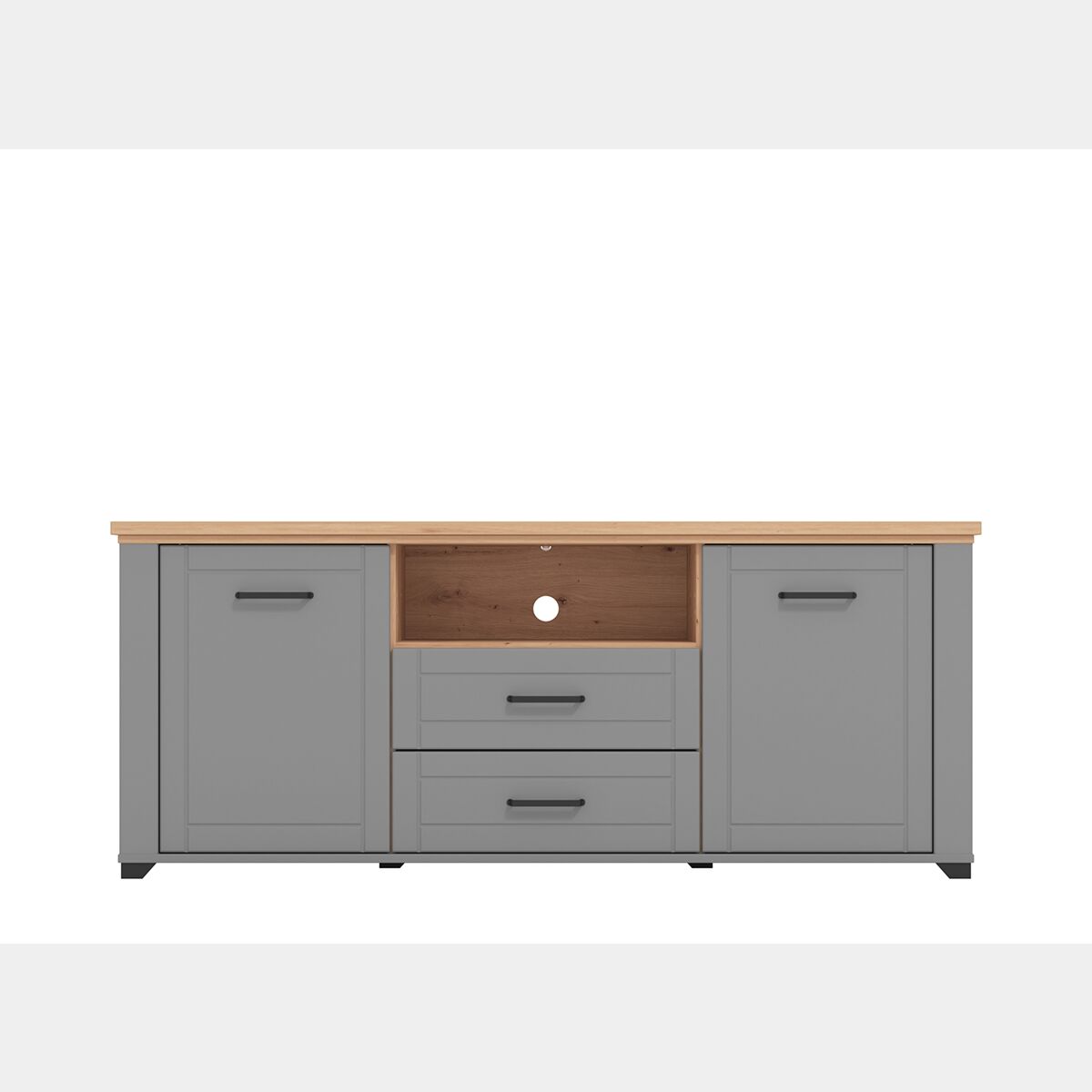 Mobile tv contemporaneo con cassetti, finitura Rovere e Grafite