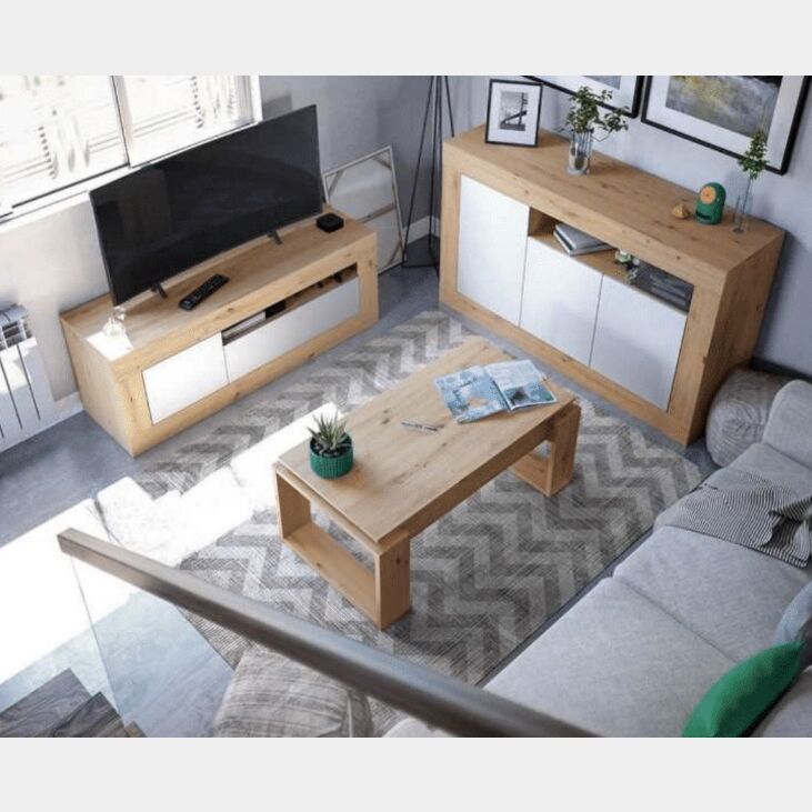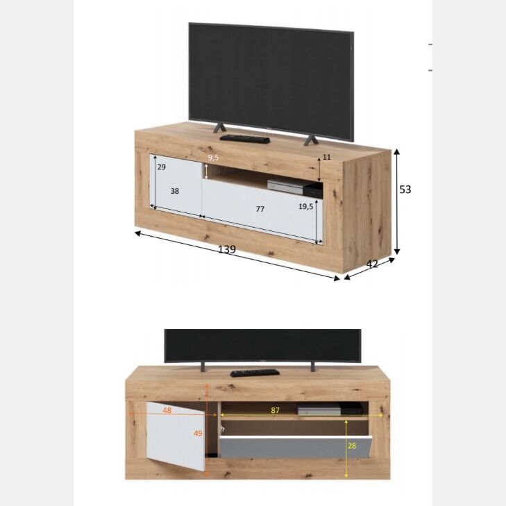 Mobile tv rovere nodi e bianco opaco con anta e ribalta