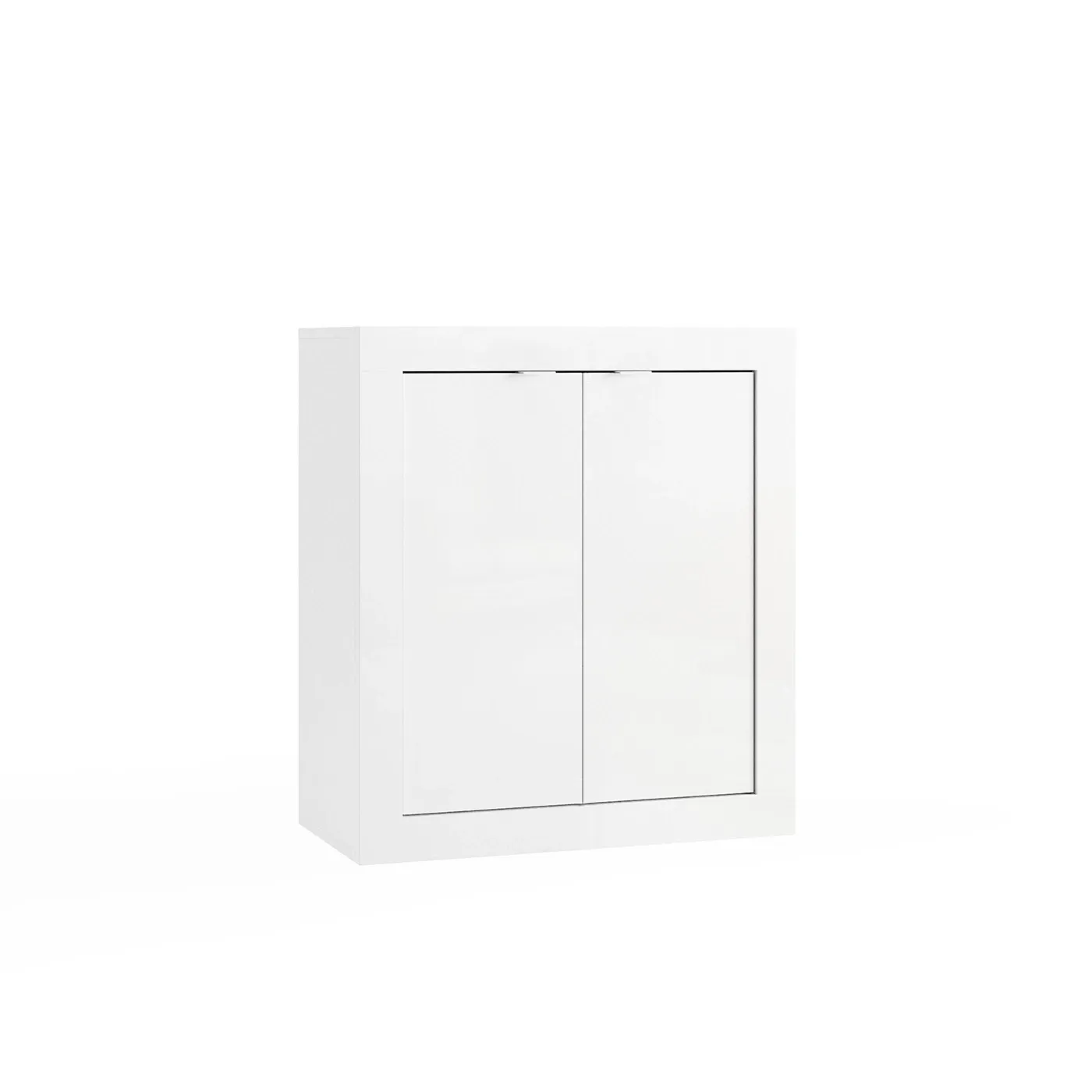 Mobiletto bagno 2 ante, 70x78x35 h cm, Bianco laccato lucido
