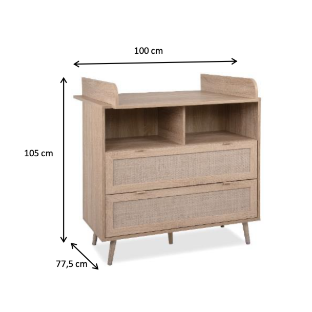Mobiletto fasciatoio con 2 ante e 2 vani a giorno, finitura Quercia con frontali effetto Rafia