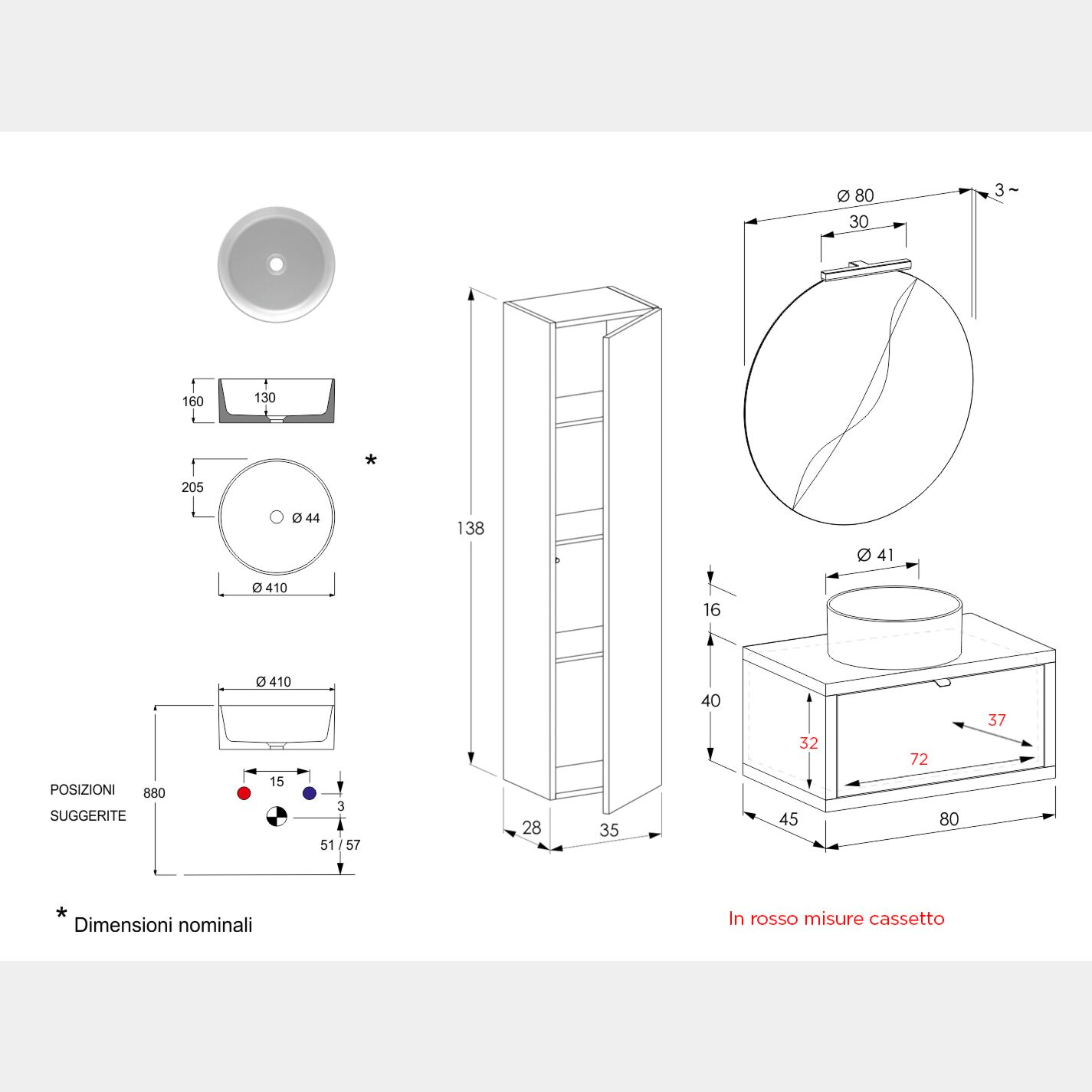 - Lavabo in ceramica: D.41 H.16 (optional)
