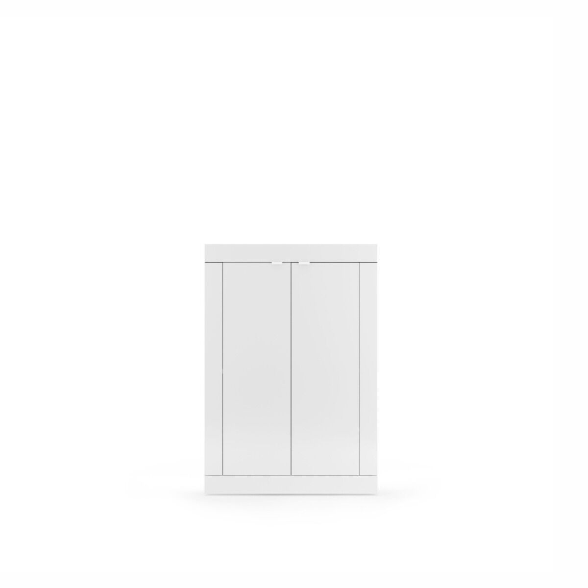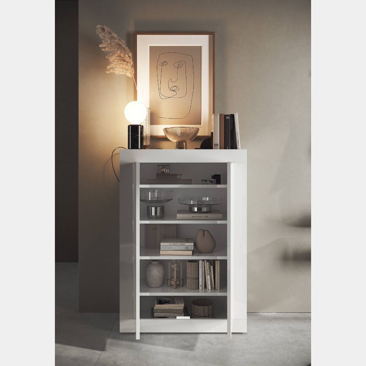 - Madia moderna a 2 ante con 4 ripiani interni, ideale sia per grandi spazi che per ingressi dalle dimensioni limitate. La madia è dotata di due piccole maniglie poste nella parte alta dei frontali.
