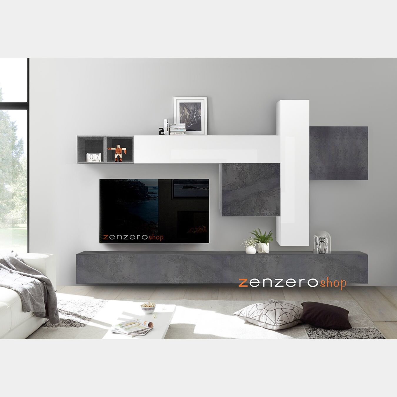 Mobili parete attrezzata Soggiorno Zenzero parete attrezzata ossido, piombo e bianco lucido