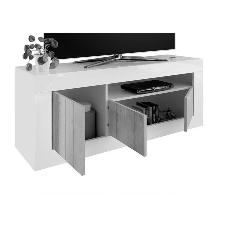 Il porta tv moderno unisce l'eleganza del design italiano e il fascino moderno offrendo così un risultato estremamente chic e rendendo la vostra zona living di tendenza. Porta tv a 3 ante battenti e 1 vano a giorno: una soluzione pratica per il vostro soggiorno. Il pota tv ha anche un piccolo vano a giorno dove poter posizionare decoder, lettori dvd, consolle ecc.