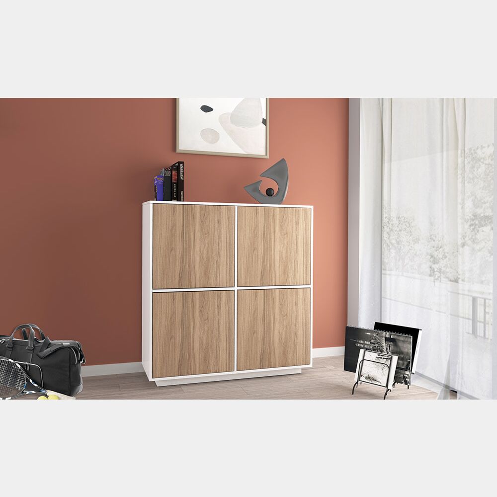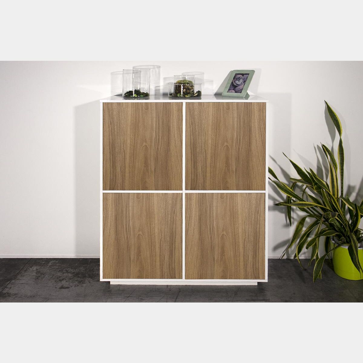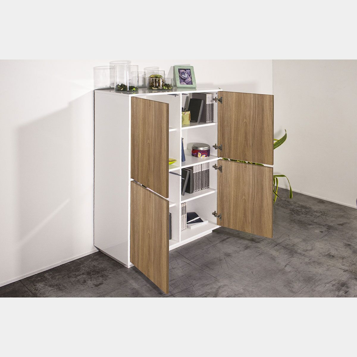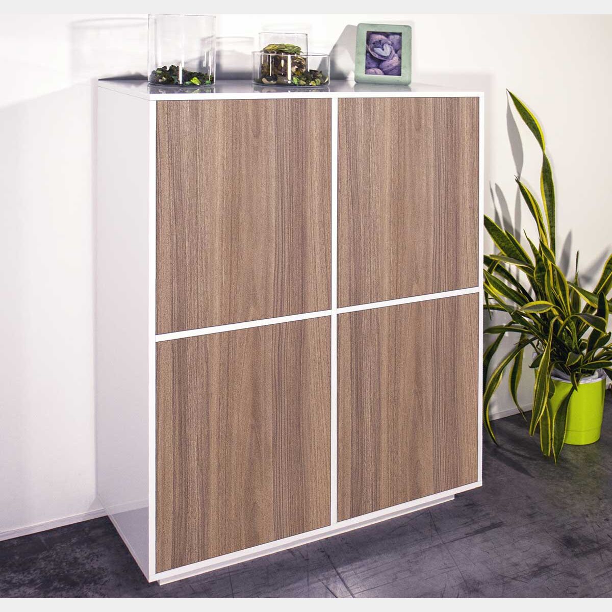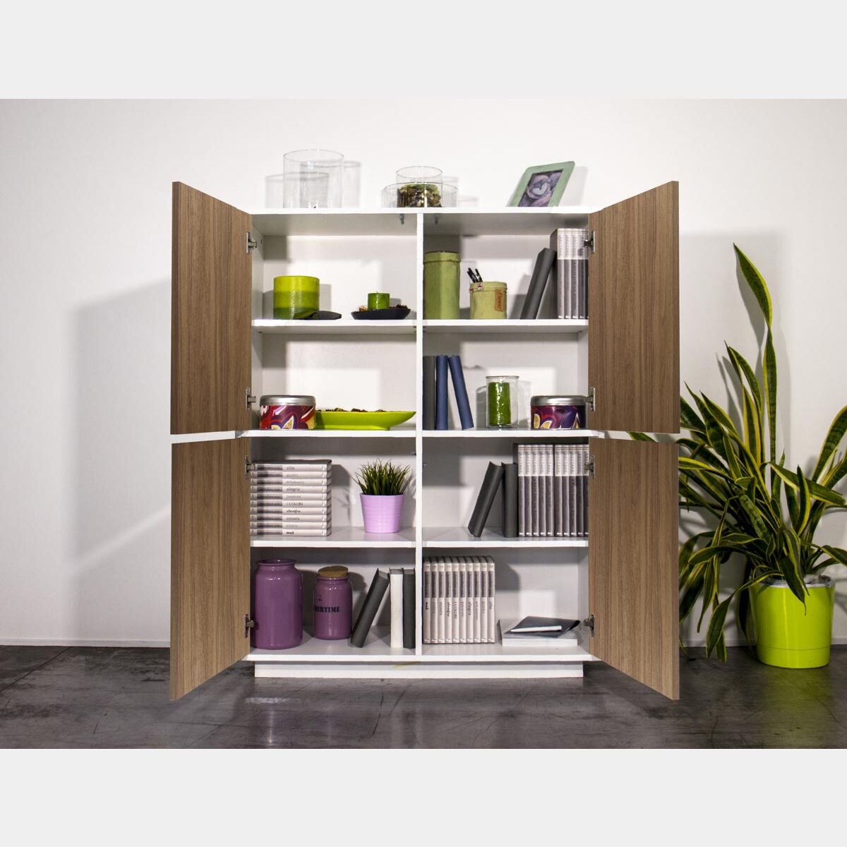 Moderna madia bianca laccata lucida e ante in finitura noce caracalla