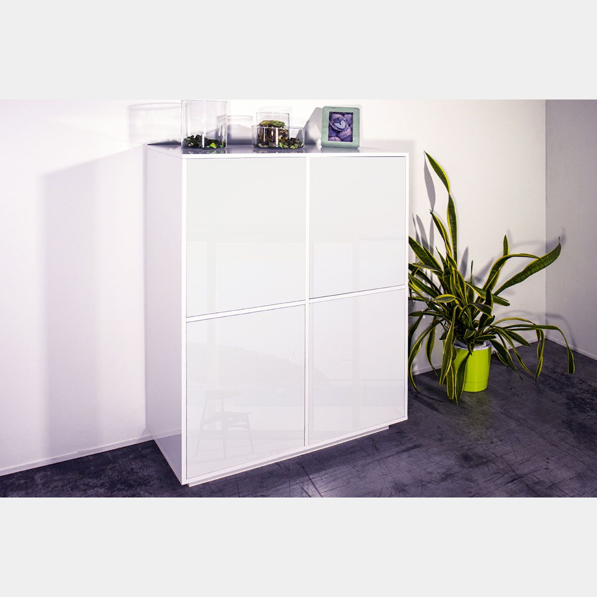 Moderna madia credenza alta di design con quattro ante bianco bianca laccata lucida