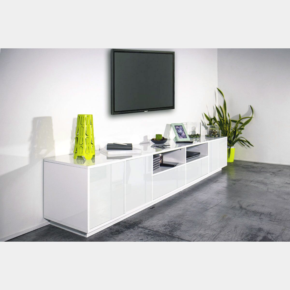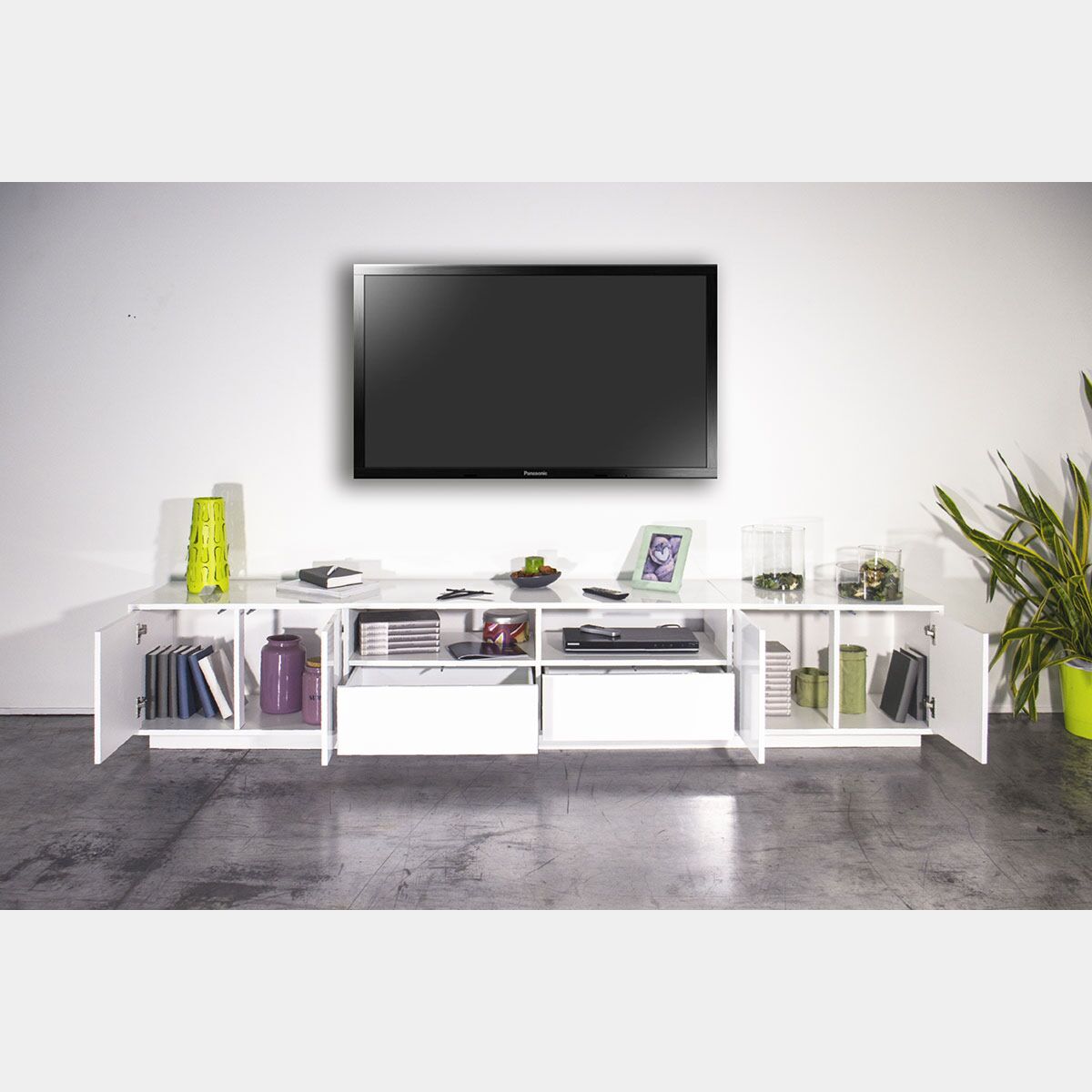Moderno porta tv in appoggio in finitura bianco laccato lucido