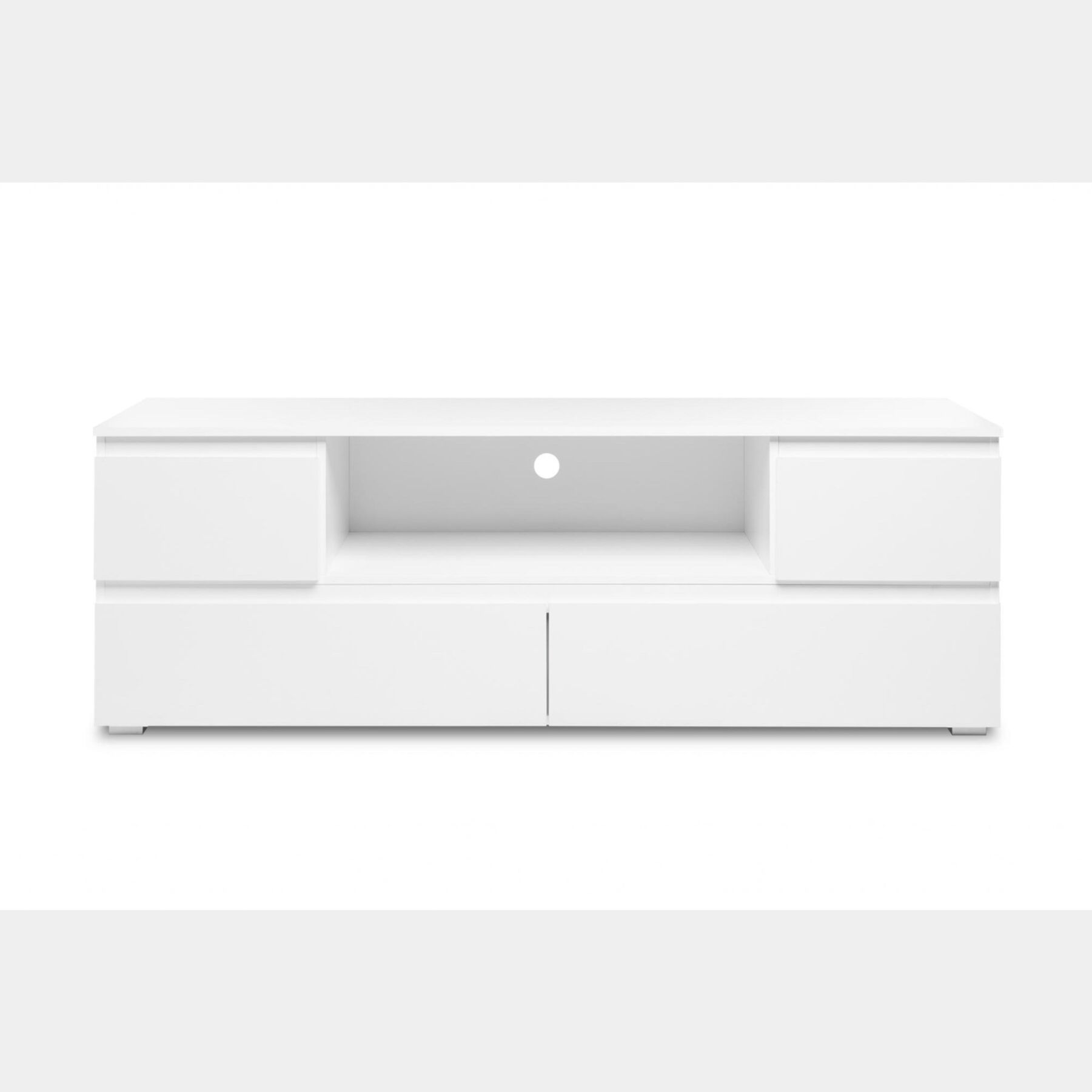 Moderno Porta TV finitura Bianco Opaco composto da 3 cassetti e 1 vano a giorno finitura bianco lucido.