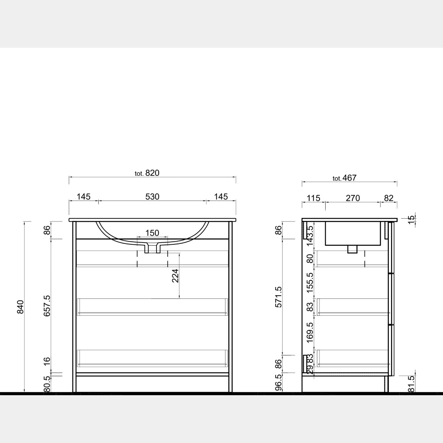 Il bagno L.80 cm è realizzato in finitura Mercure è perfetto per contenere tutti i vostri accessori da bagno grazie alla sua capienza e ai 3 cassetti pratici e funzionali.