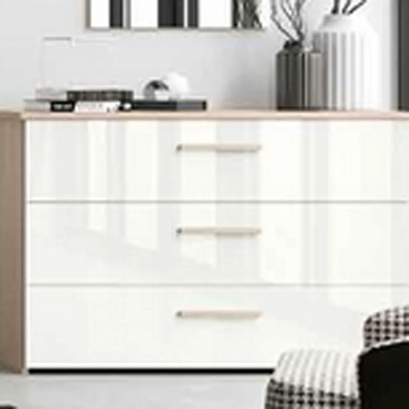 Ecco a voi un bellissimo comò in finitura Bianco nobilitato e Olmo da inserire nella vostra camera da letto o in una cameretta, è costituito da tre comodi cassetti pronti a ospitare tutti i vostri vestiti al meglio.