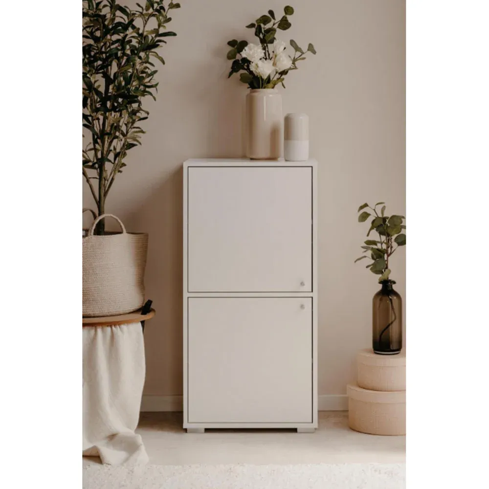 -2 Mobili multiuso con due ante e tre ripiani, Rovere Oak e Bianco L.46 H.96.5 P.33,5